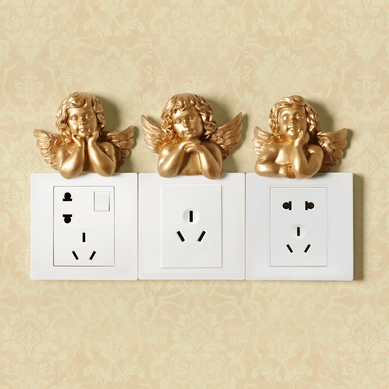 Comprar Interruptor de resina europeia cortinas Decoração de Parede Decorativo Tomada Interruptor Adesivos estereoscópico Anjo Cupido Escultura de casamento Adorno Baratas Online Preço