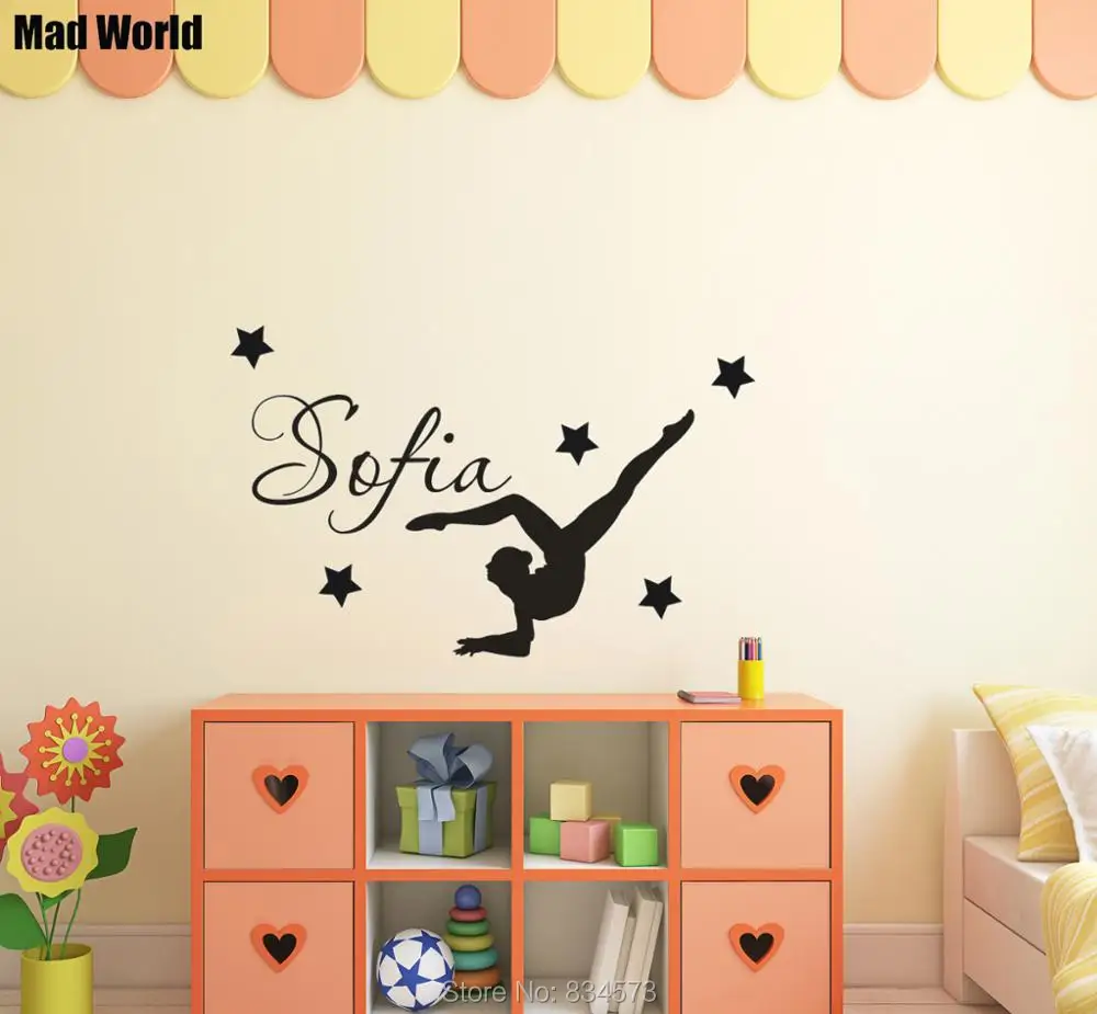 Comprar Nome personalizado meninas ginasta Ginástica Arte Adesivos de Parede Decalques de Parede Início DIY Decoração Removível Room Decor Adesivos de Parede Baratas Online Preço.