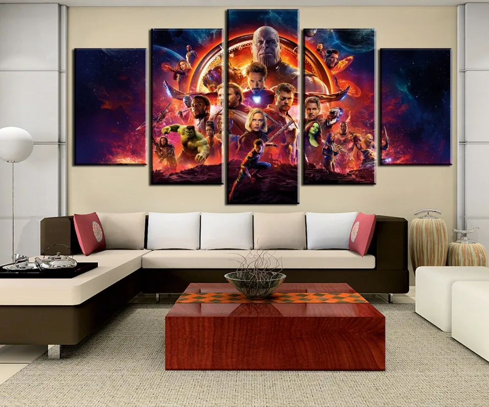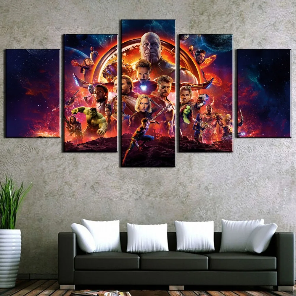 Comprar Novo 5 Peças HD Impressão Grande Avengers Filme de Guerra de Infinito Pinturas cartaz na Arte Da Parede Da Lona para Casa Decorações de Parede decoração Baratas Online Preço.