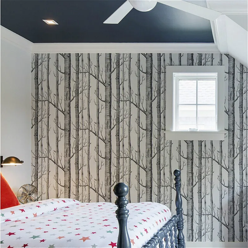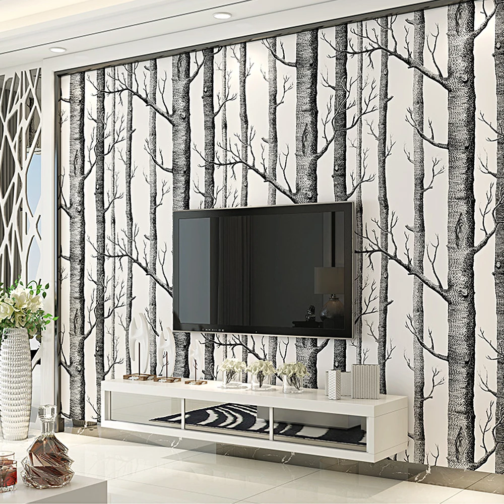 Comprar Preto Árvore de Vidoeiro Branco Sala Parede Rolo de Papel Papel De Parede para Quarto Design Moderno Rústico Floresta Madeiras Wallpapers Baratas Online Preço.