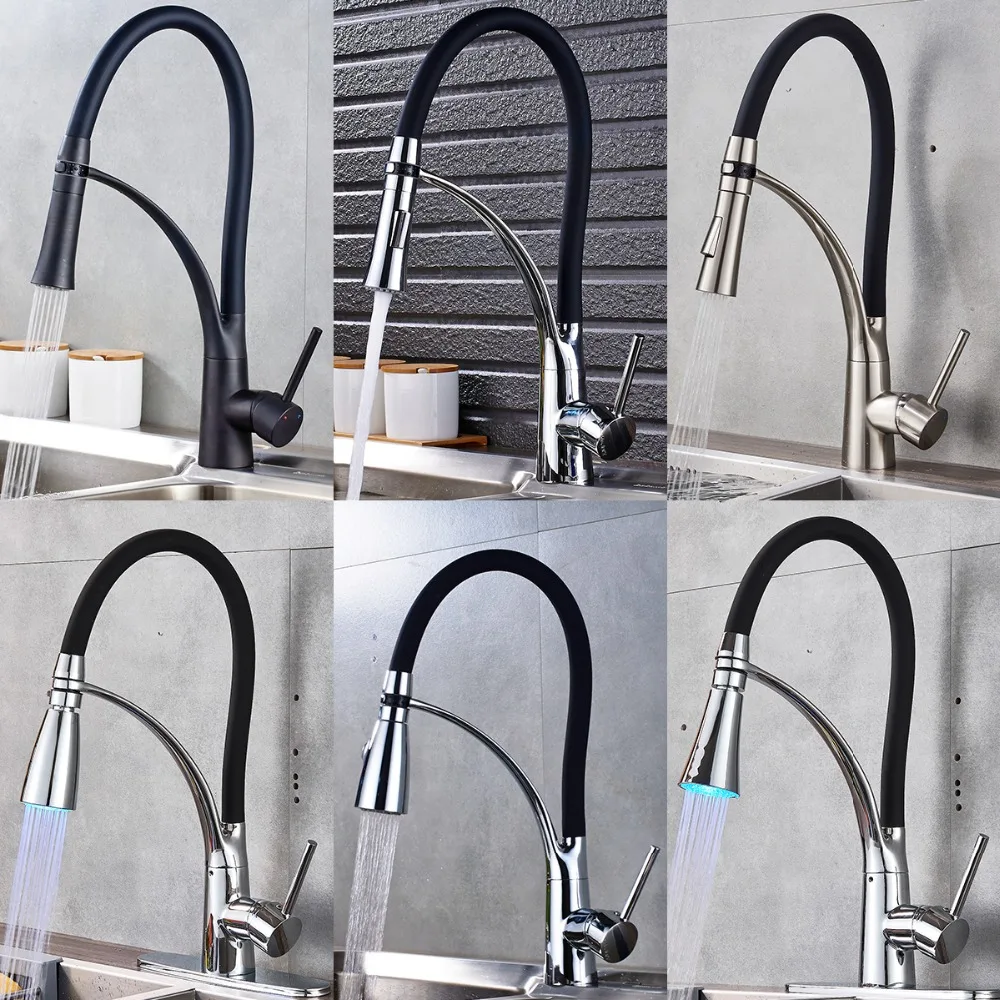 Comprar Quyanre Preto LED ORB Torneira Da Cozinha Pull out Pulverizador 360 Rotação Torneira Da Pia Único Punho Torneira Misturadora de Borracha Preta torneiras Baratas Online Preço.