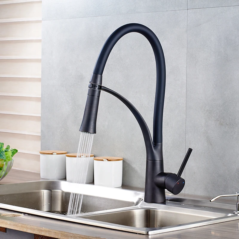 . Melhor Quyanre Preto LED ORB Torneira Da Cozinha Pull out Pulverizador 360 Rotação Torneira Da Pia Único Punho Torneira Misturadora de Borracha Preta torneiras Barato Online Preço.