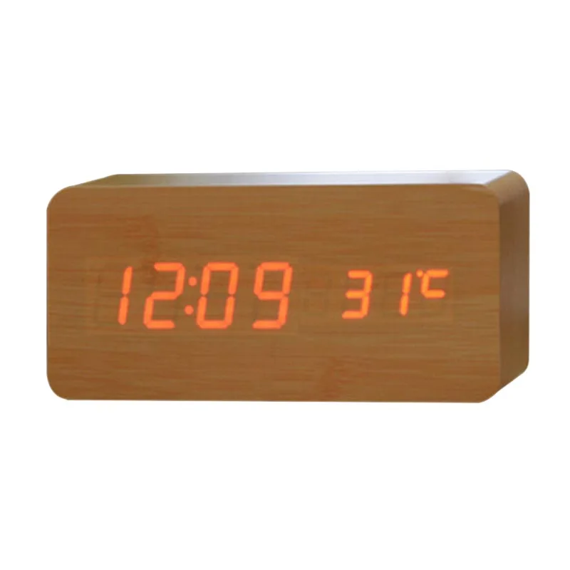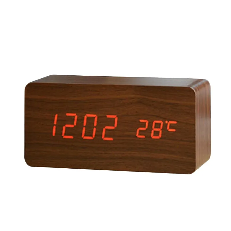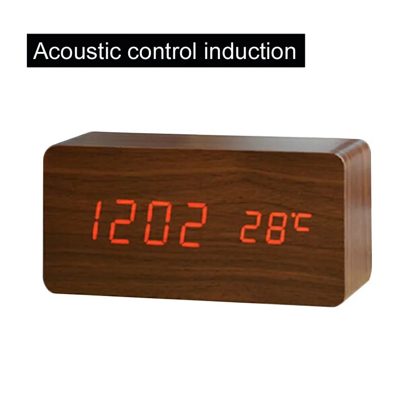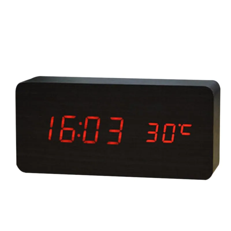 Comprar Relógio de Mesa de madeira Display de Temperatura Soa Controle Display LED de Alarme Relógio De Mesa Eletrônico Digital Relógios de Mesa Baratas Online Preço.