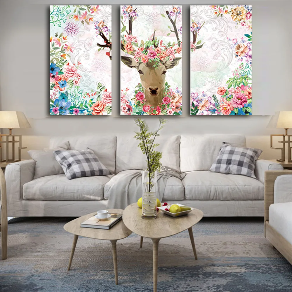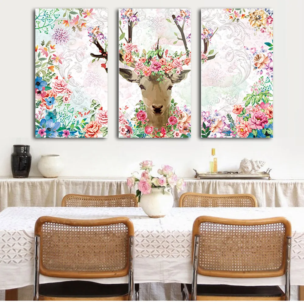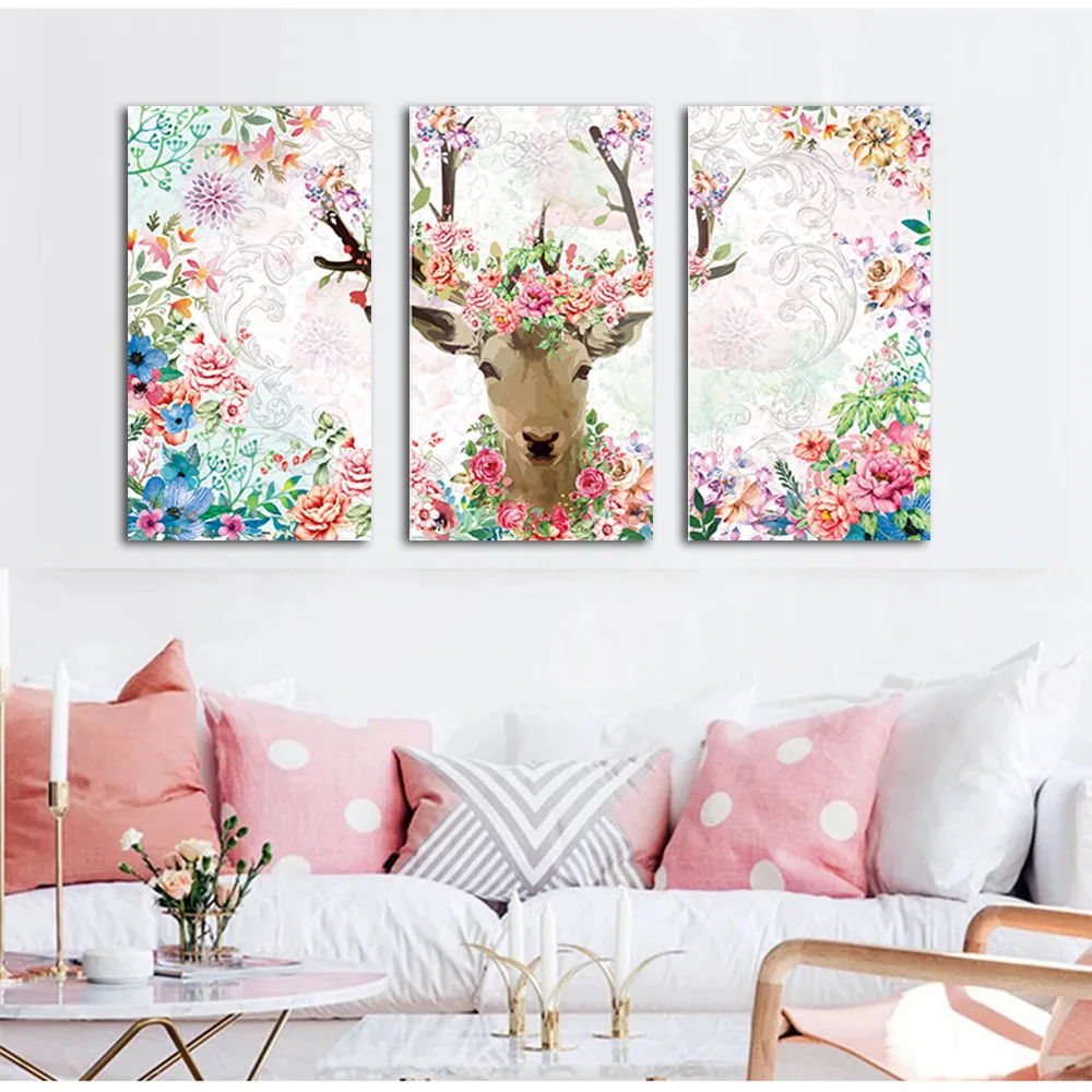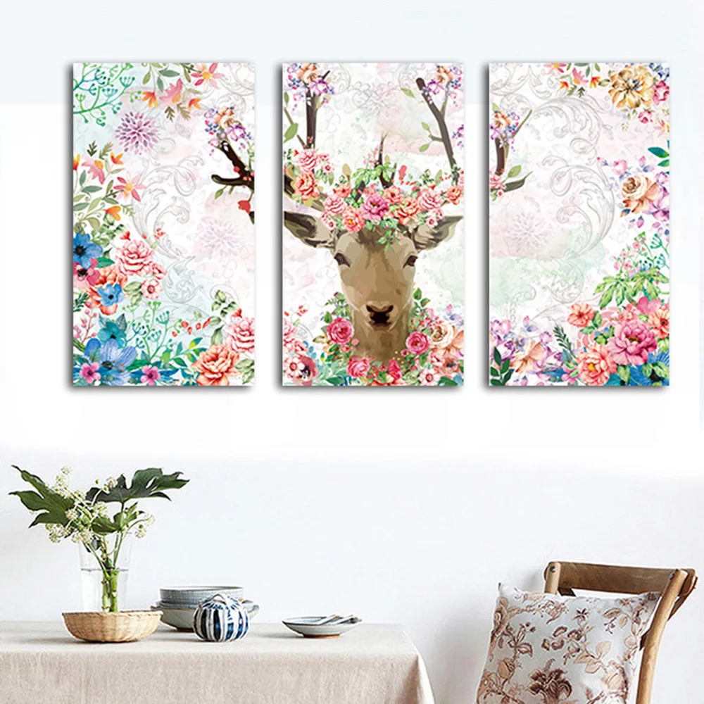 . Melhor WANGART Aquarela 3 peças Pintura Cartaz Alces Animal Da Flor Da Arte Da Parede Da Lona para sala de estar Em Casa Impressão Decoração Fotos Barato Online Preço.