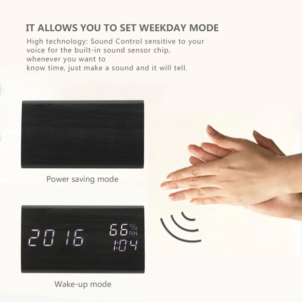 Comprar 3 Configurações de Alarme de madeira Relógio Despertador Digital Relógio Despertador Calendário Termômetro Para O Presente, Soa Controle Digital Clock Despertador Baratas Online Preço.
