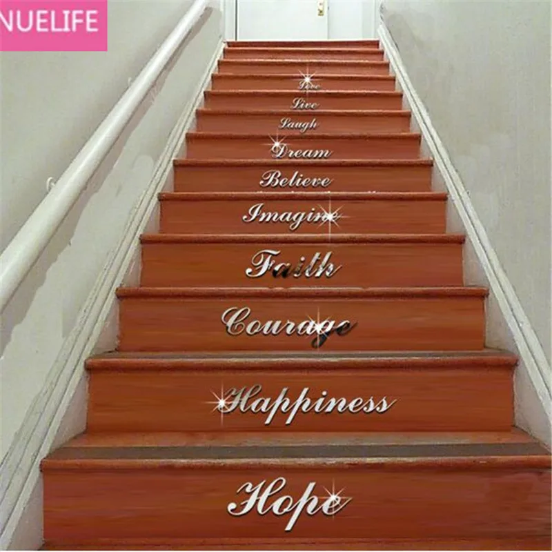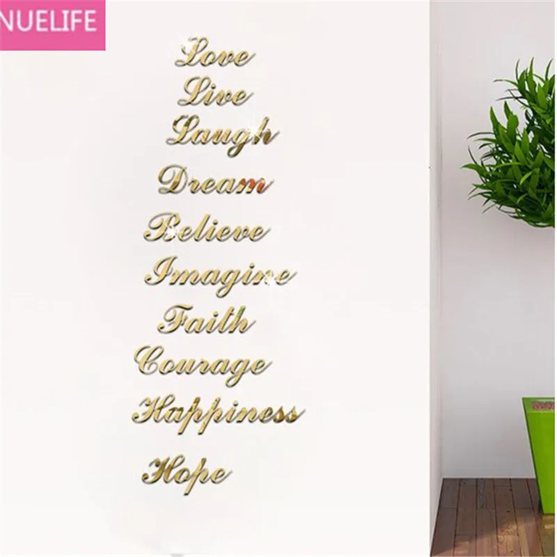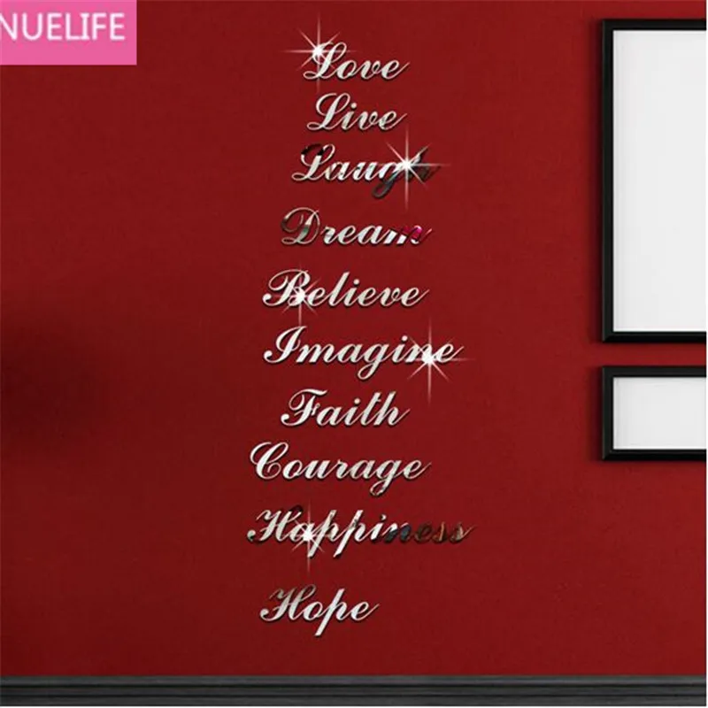 Comprar 44x113 cm Amor Vivo do Riso Inglês Carta Padrão Espelho Adesivo Quarto sala de estar crianças quarto Escadas Fundo TV adesivos de parede Baratas Online Preço.