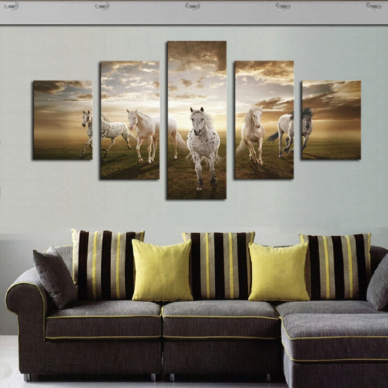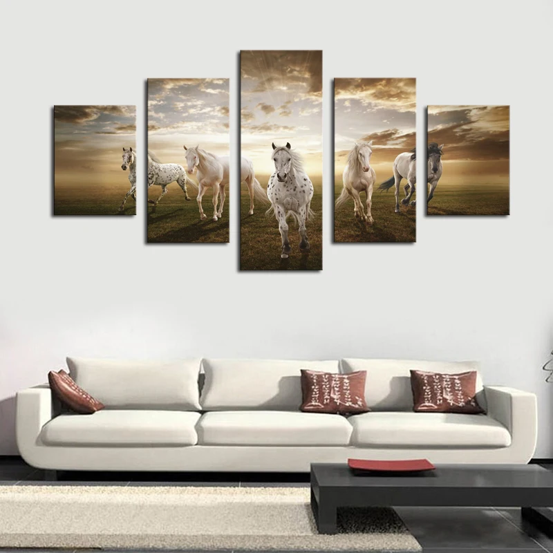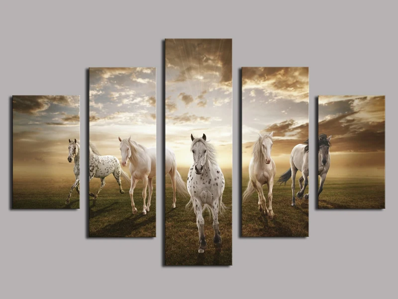 Comprar 5 Painéis de Lona Barato Retratos Da Arte do Cavalo Running HD Grande Modern Home Decoração Arte Da Parede Emoldurado Pintura Da Lona Abstrata Modular Baratas Online Preço