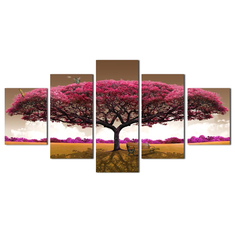 Comprar 5 Painel Grande Pintura Da Lona da árvore da borboleta Pintura A Óleo de Impressão em Casa Decoração Da Lona de Arte do Retrato Da Parede Para Sala de estar Unframed Baratas Online Preço