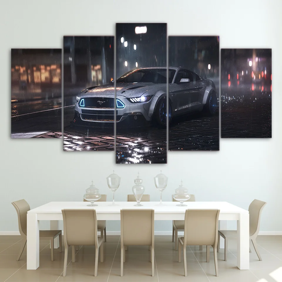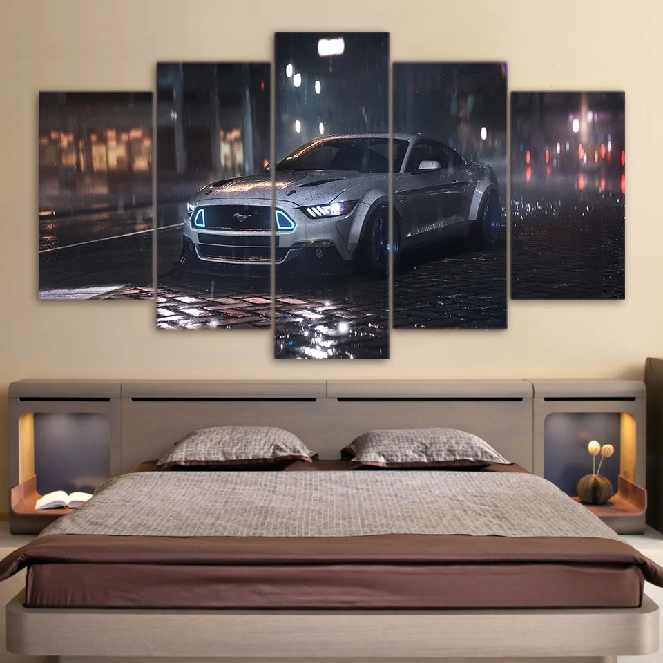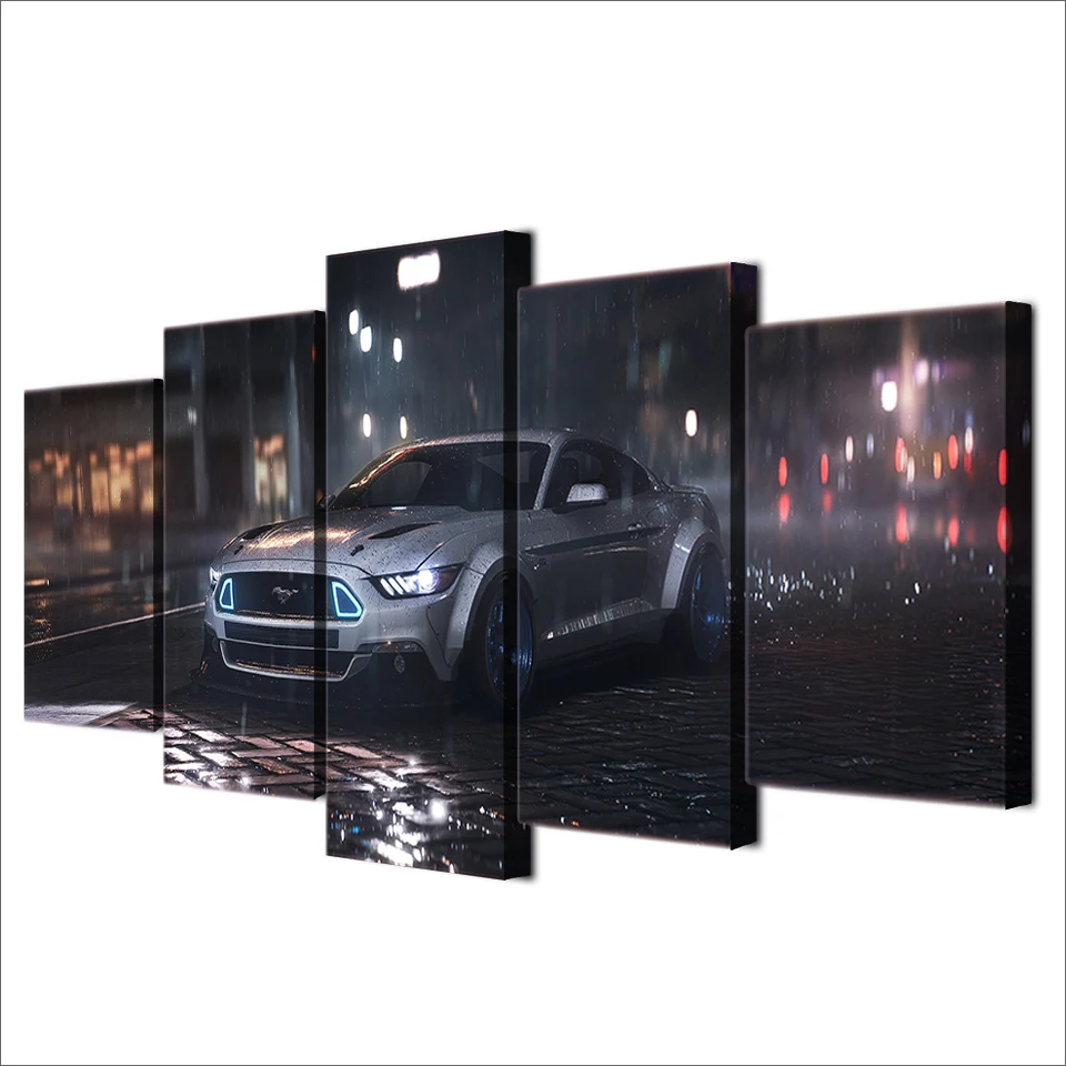 Comprar 5 Peça Da Arte Da Lona Ford Mustang Carro HD Impresso Arte Da Parede Decoração Da Casa Da Lona Pintura Modular Imagem Cópias Do Cartaz quadros de parede para sala parede 5 moldura Baratas Online Preço.