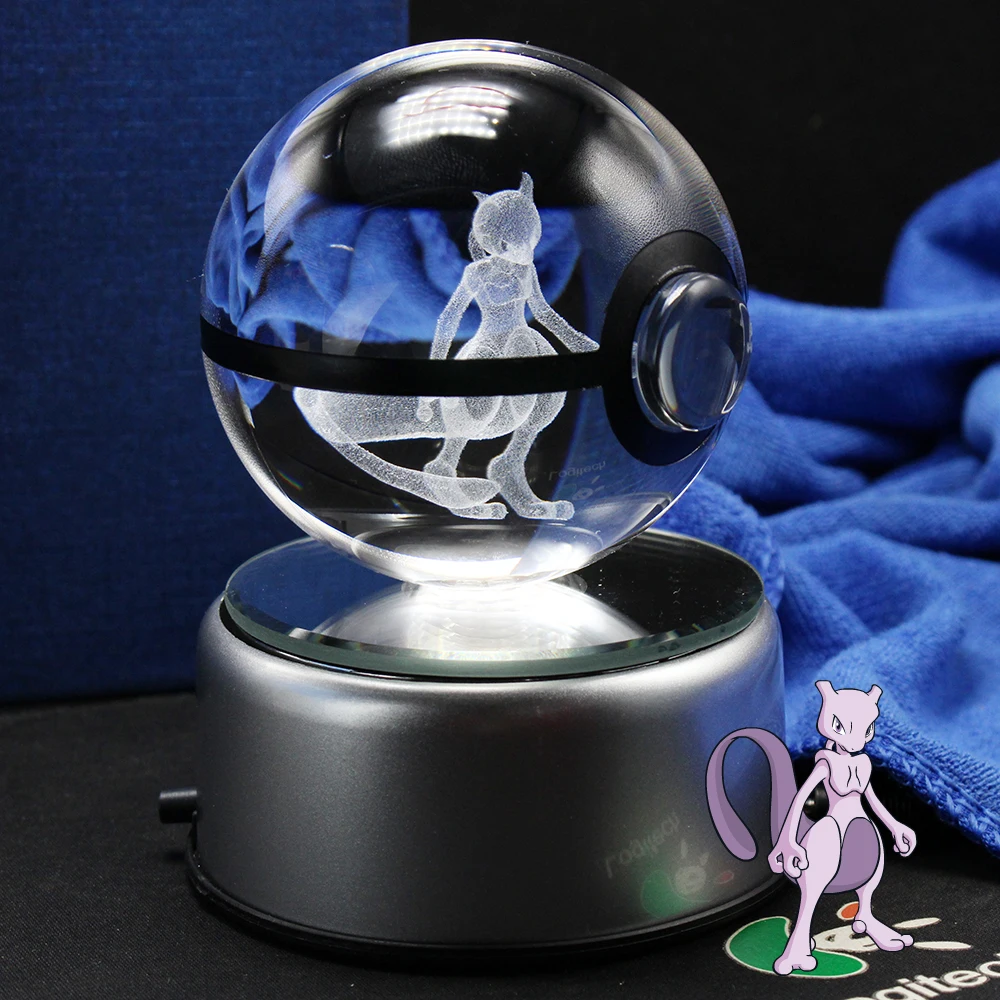 Comprar Agradável Moda Pokemon Mewtwo Gravura 3D Bola de Cristal Com Base de LED Presentes de Natal Baratas Online Preço