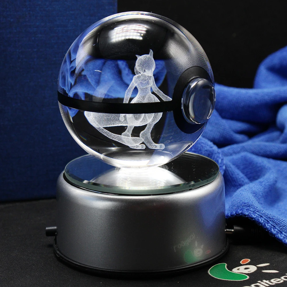 Comprar Agradável Moda Pokemon Mewtwo Gravura 3D Bola de Cristal Com Base de LED Presentes de Natal Baratas Online Preço.