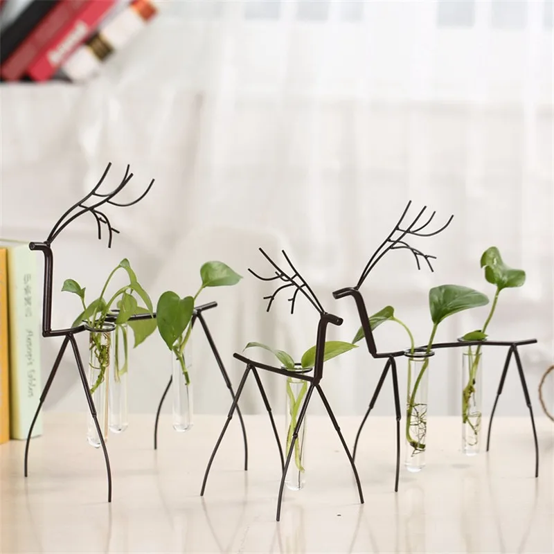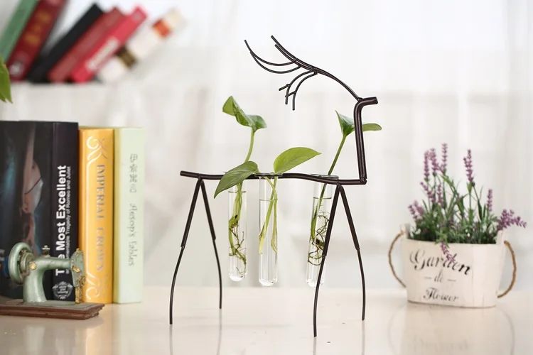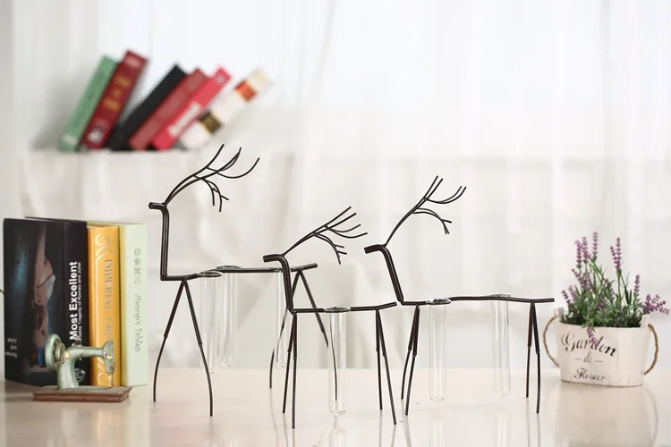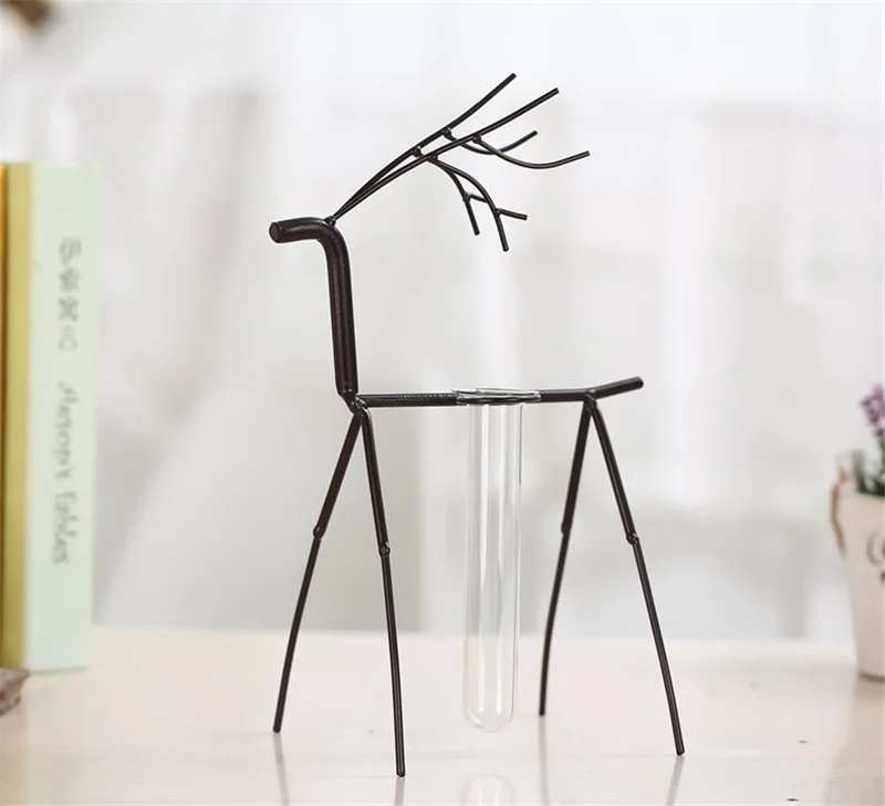Comprar Antigo Decoração Artística de Ferro País Nórdico Veados com Tubo De Ensaio de Vidro de Água Decorativo Artesanato Home Office Baratas Online Preço.