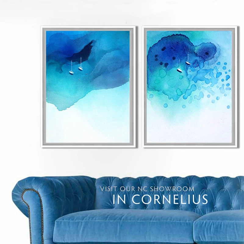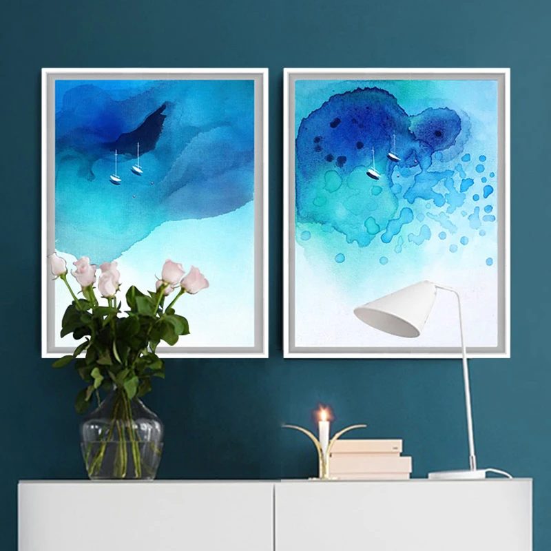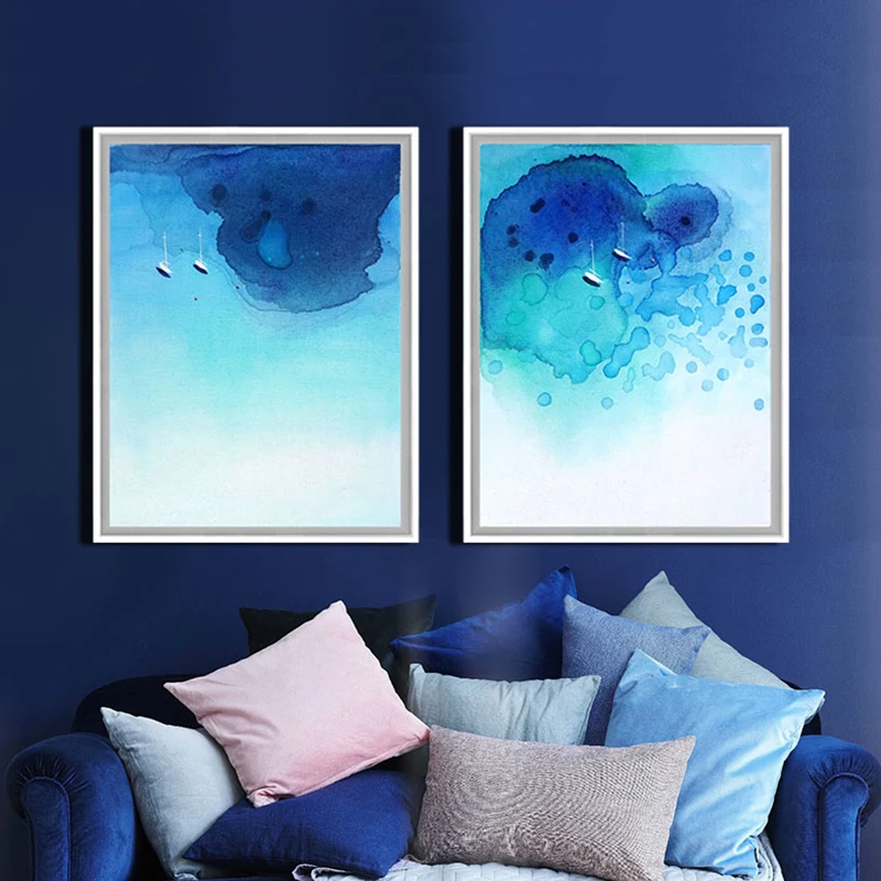 Comprar Aquarela abstrata pintura moderna casa decoração wall poster impressão oceano azul 3 peça da arte da lona para sala de estar Baratas Online Preço.