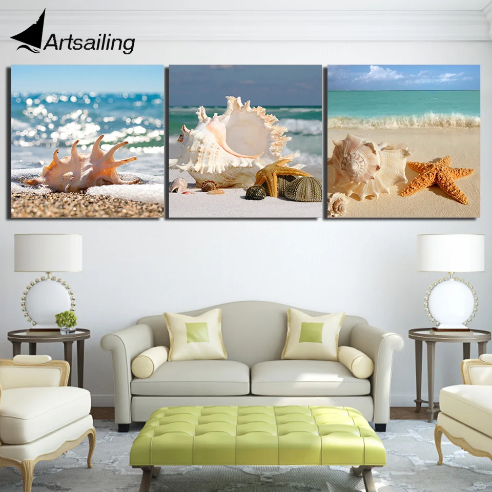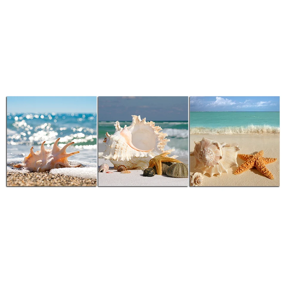 . Melhor ArtSailing HD Impresso 3 Peça Pintura Da Lona Imagem Onda Do Mar da Praia Shell Estrela Do Mar Nórdico Cópias Da Lona Para Sala de estar Barato Online Preço.
