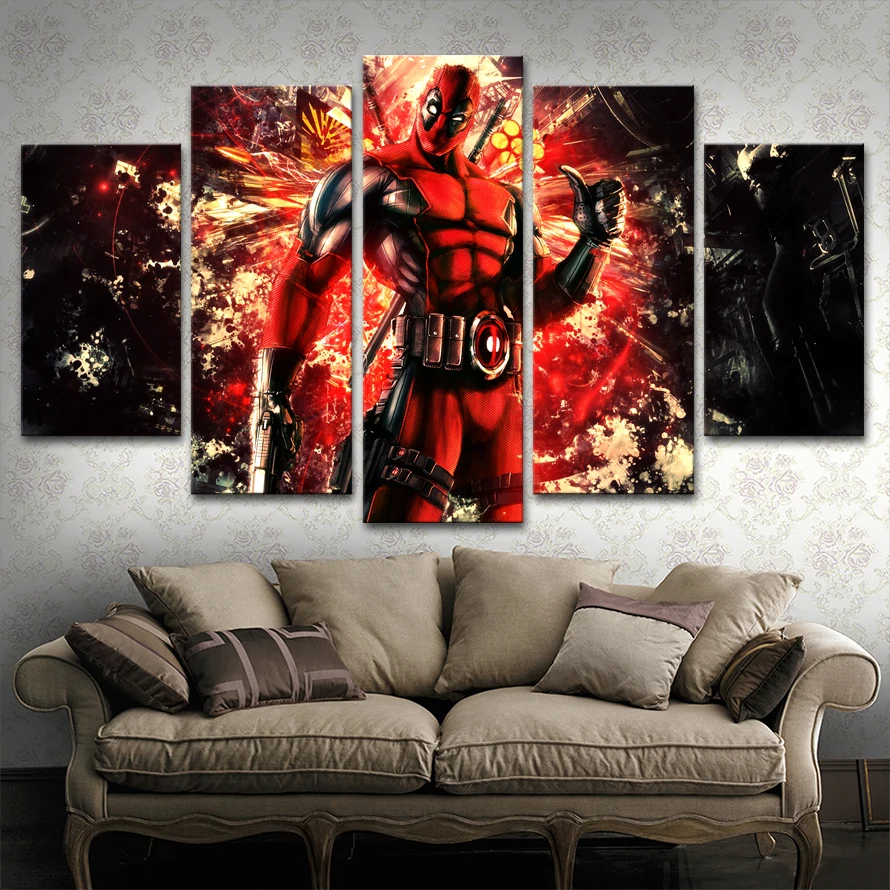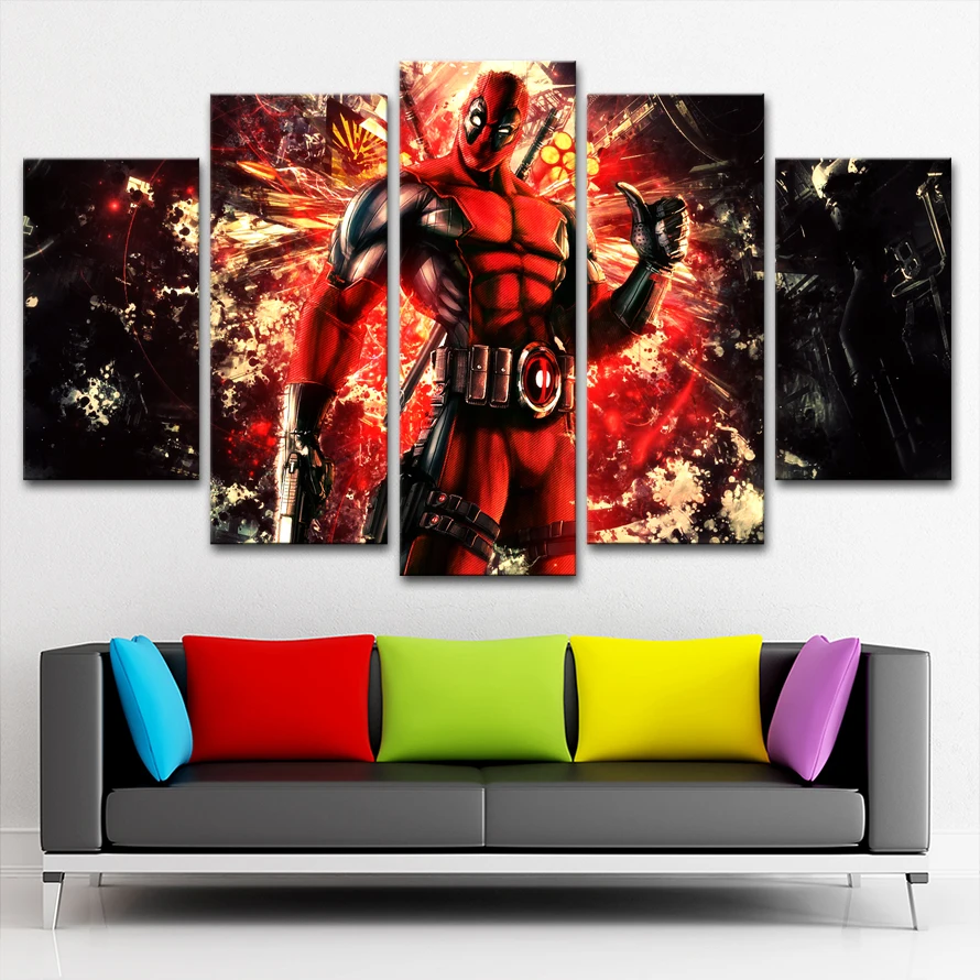 Comprar Casa Decoração Da Parede Da Sala de Arte Cópia Da Lona Pinturas Cartaz Quadro 5 Peças Filme Deadpool Modular Fotos Arte Moderna Baratas Online Preço.