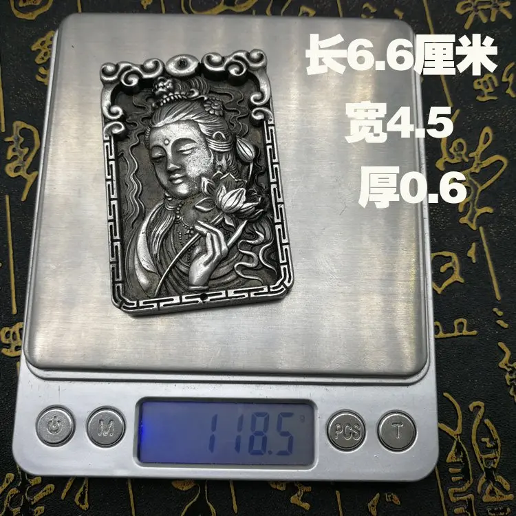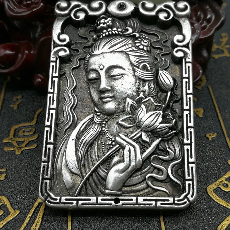 Comprar China Collectible Velho prata miao escultura Guanyin bodhisattva Kwan yin Buda ofícios do metal colar de pingente Baratas Online Preço.