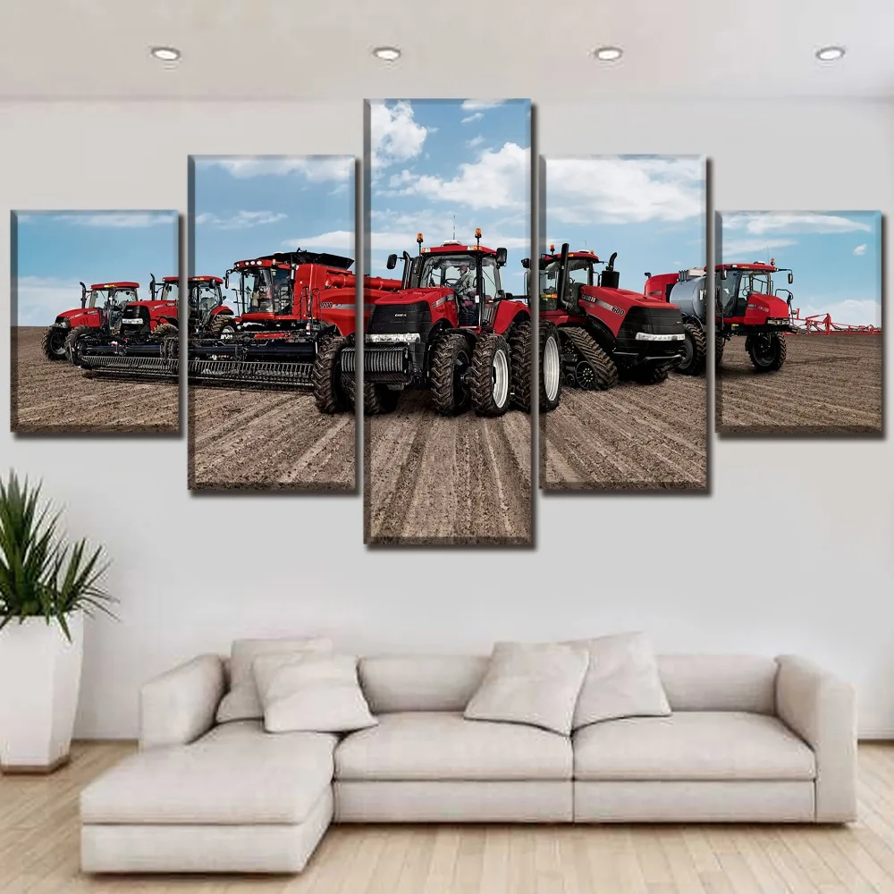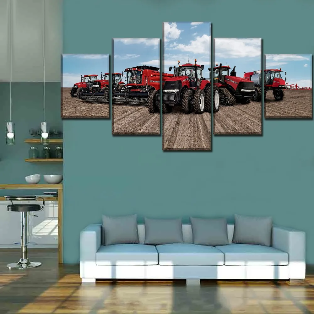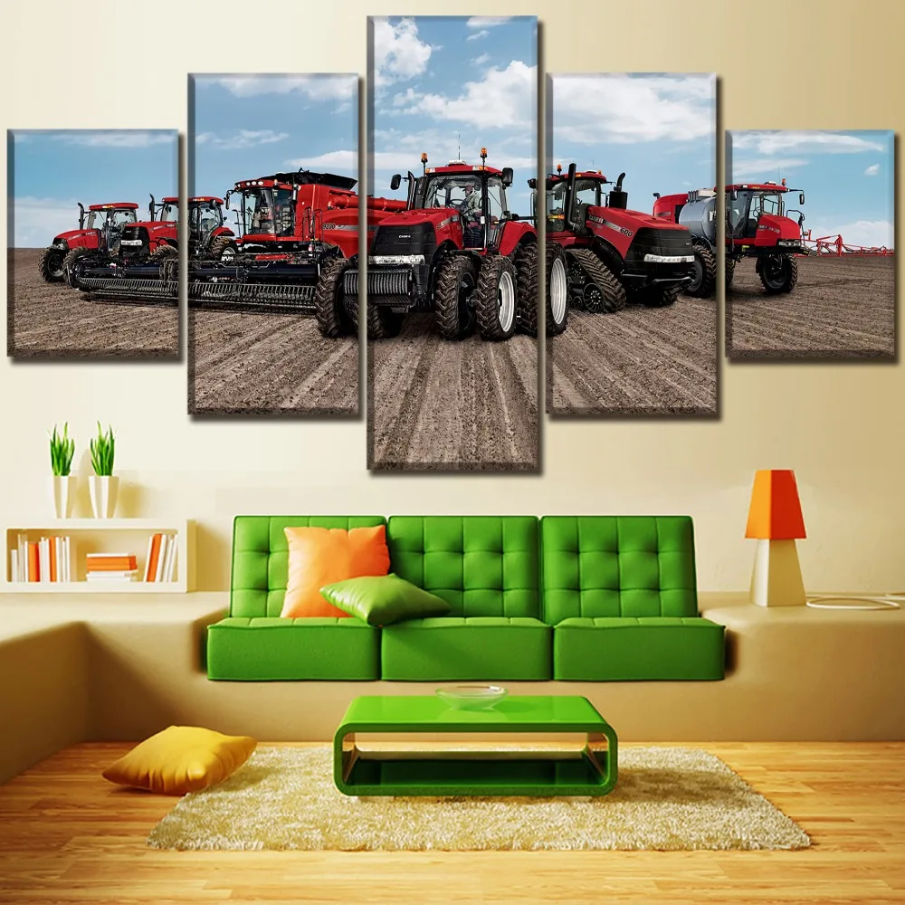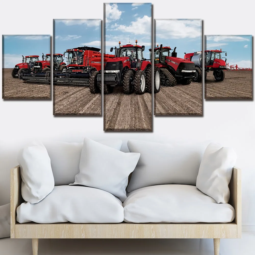 Comprar Cópia da lona de Arte do Cartaz de Parede Modular Quadro de Imagem Moderna Casa Decorativo 5 Peça Vermelha Máquina de Corte E Os Agricultores Pintura Baratas Online Preço.