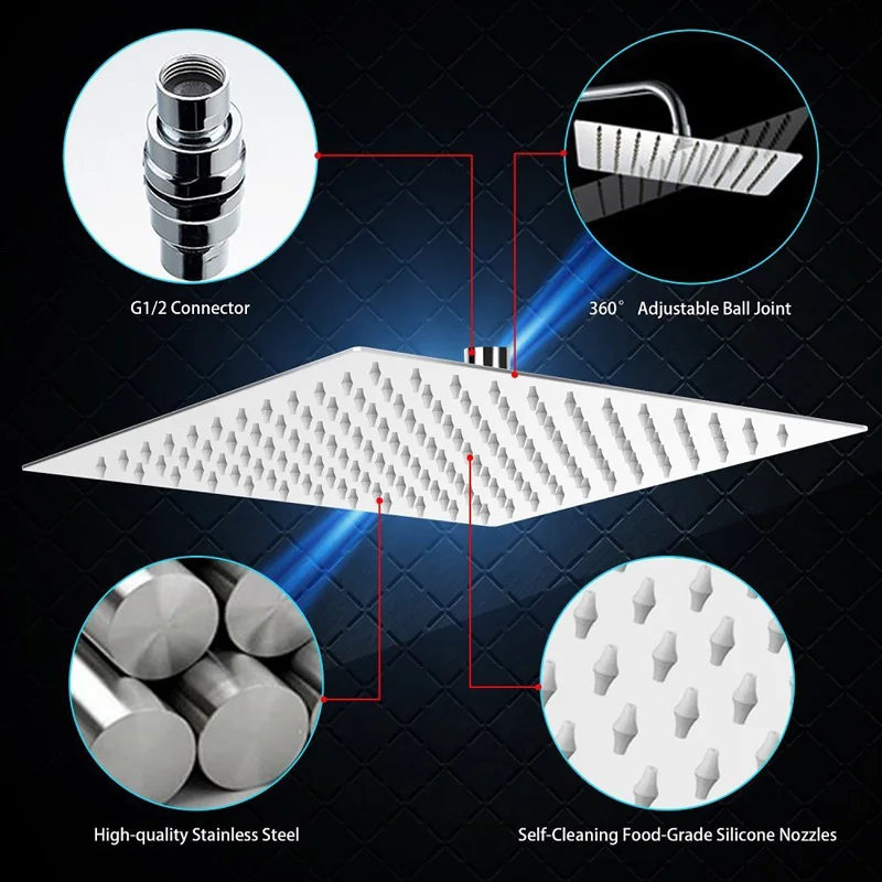 . Melhor Cromo 16 polegada Quadrada de Aço Inoxidável Ultrafinos Cabeça de Chuveiro Da Precipitação Cabeça de Chuveiro Acabamento Cromado Chuva Topo Chuveiro Cabeça Torneira Barato Online Preço.