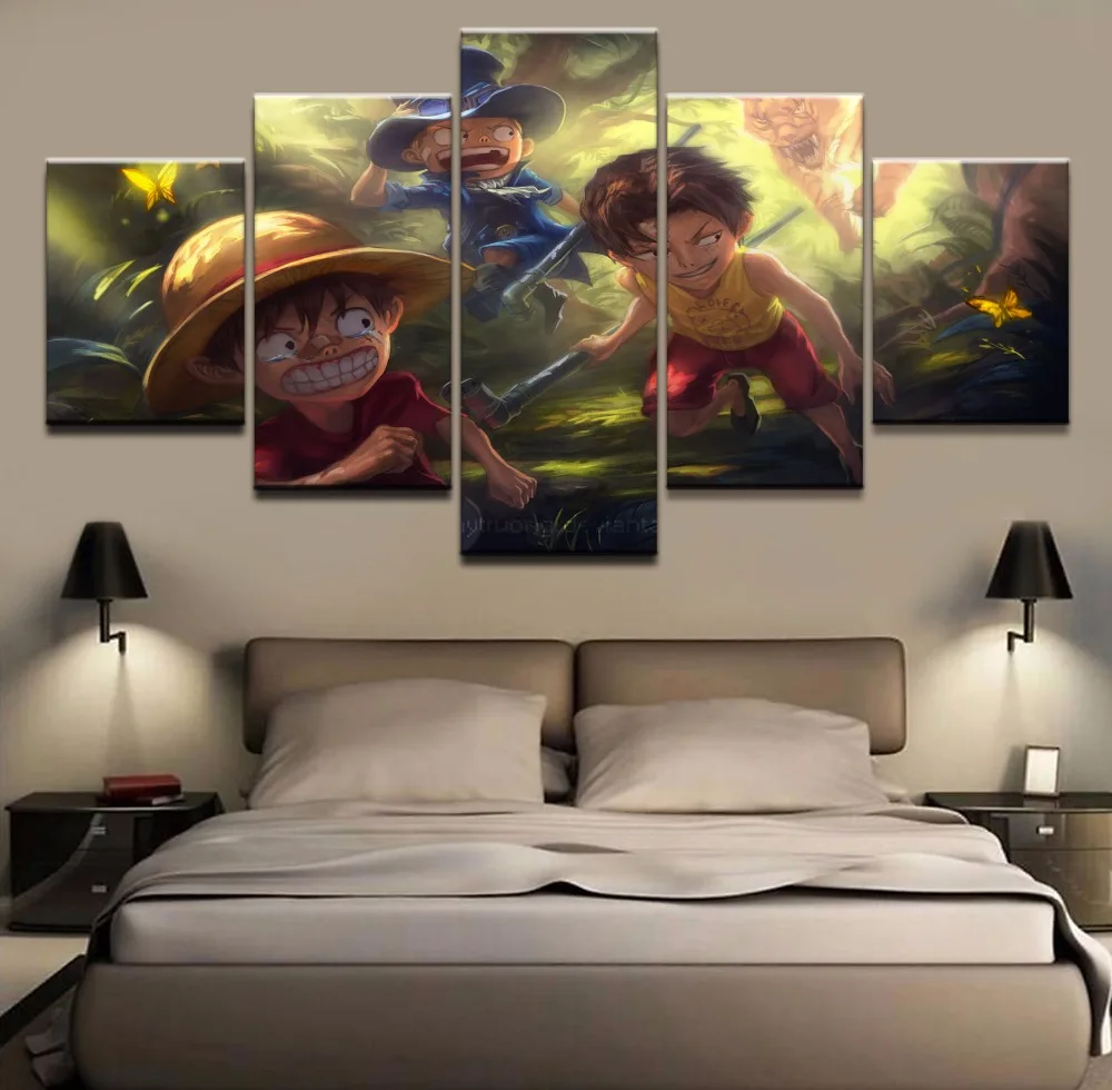 Comprar Decoração Imagem Foto 5 Painel Modular Luffy One Piece Sabo Chapéu de palha Infantil Pintura Da Arte Da Lona Quadro de Cartaz Da Parede Dos Miúdos quarto Baratas Online Preço.