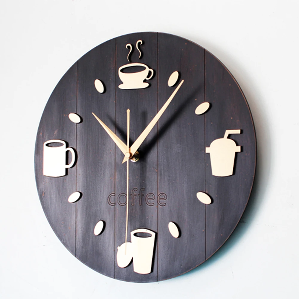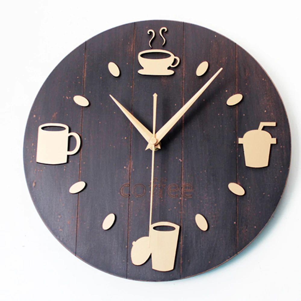 Comprar Design Moderno Relógio de Parede do Tempo do Café Da Cozinha criativa 3D Relógios Vintage Retro Arte Relógio de Parede de Mesa Home Decor Silencioso 12 polegada Baratas Online Preço.