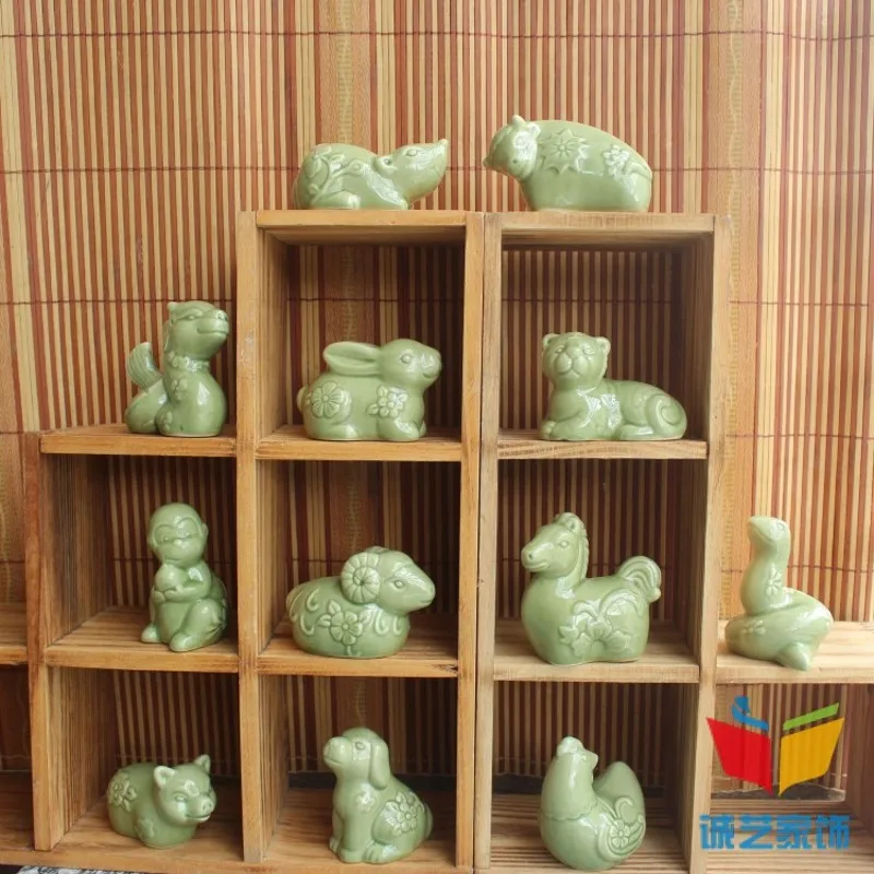 Comprar Doze Zodíaco Chinês do tanque de peixes bonsai ornamentos macaco galo cão porco zodíaco xícara de cerâmica criativa animal mobiliário carro Baratas Online Preço.