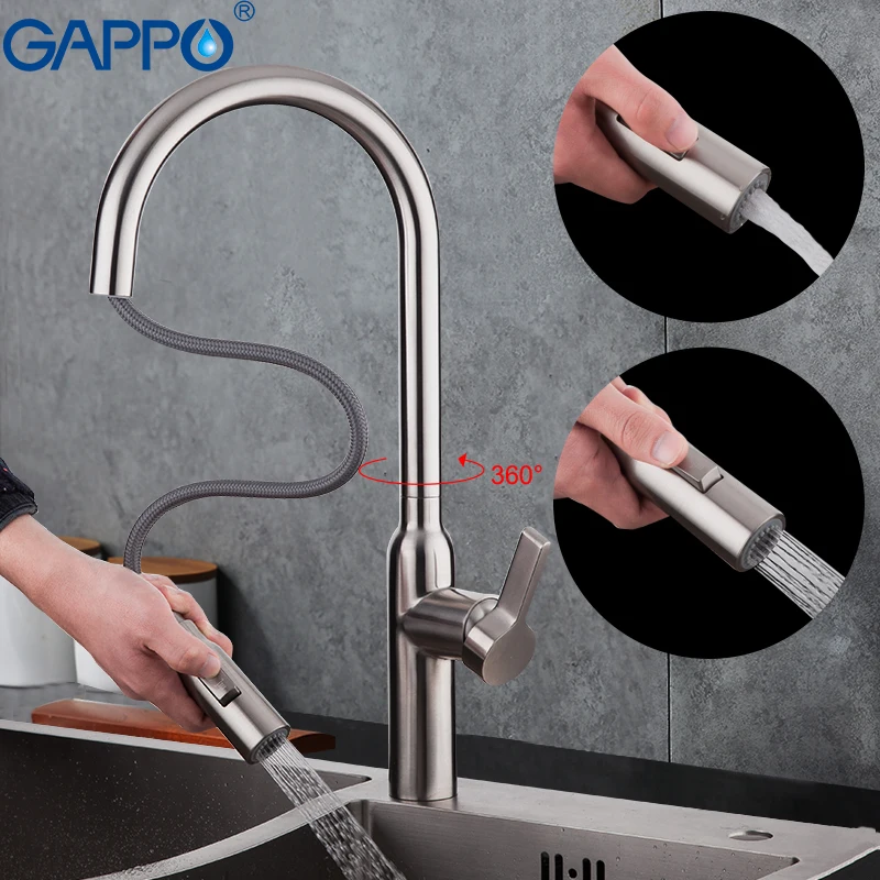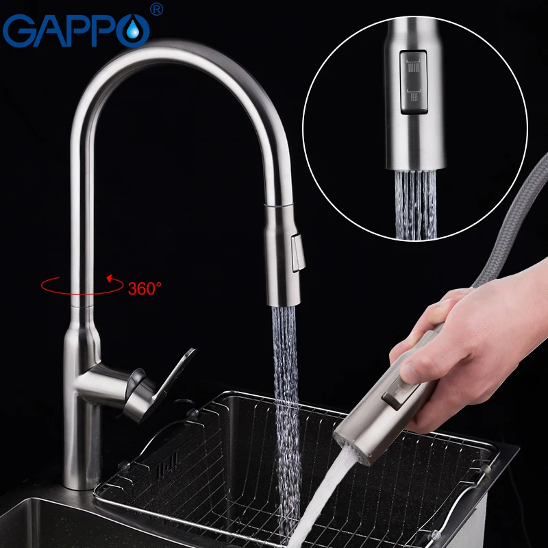 . Melhor GAPPO torneiras de cozinha água da torneira misturador de água da torneira de aço inoxidável flexível misturador da cozinha torneiras deck montado torneira fazer anheiro Barato Online Preço.