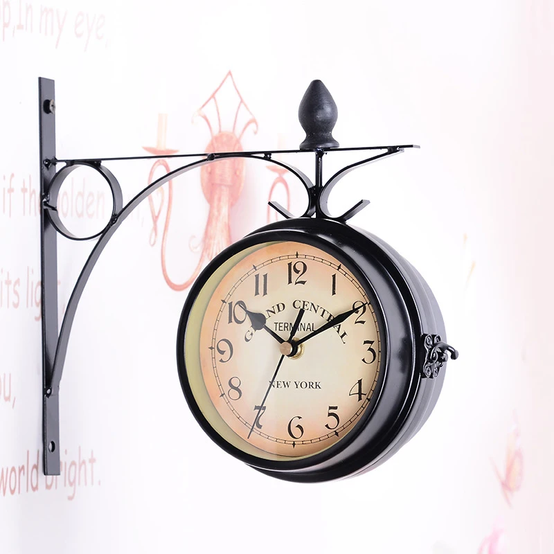 Comprar JX LCl Antique Wall Mount Jardim Do Relógio da Estação De Dupla Face Do Vintage Retro Decoração Da Sua Casa Baratas Online Preço.