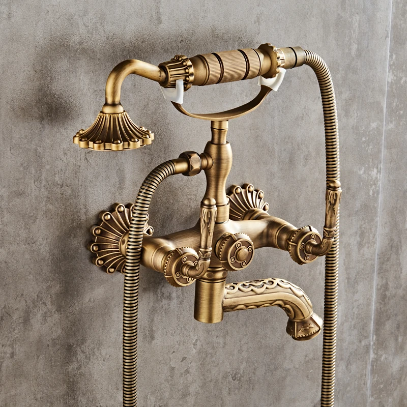 Comprar Luxo Antique Brass Torneira Do Banheiro Torneira Misturadora Kit Mão Segurava a Cabeça de Chuveiro Montado Na Parede Torneira Do Chuveiro Define XT334 Baratas Online Preço.