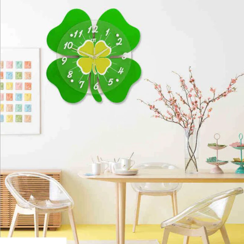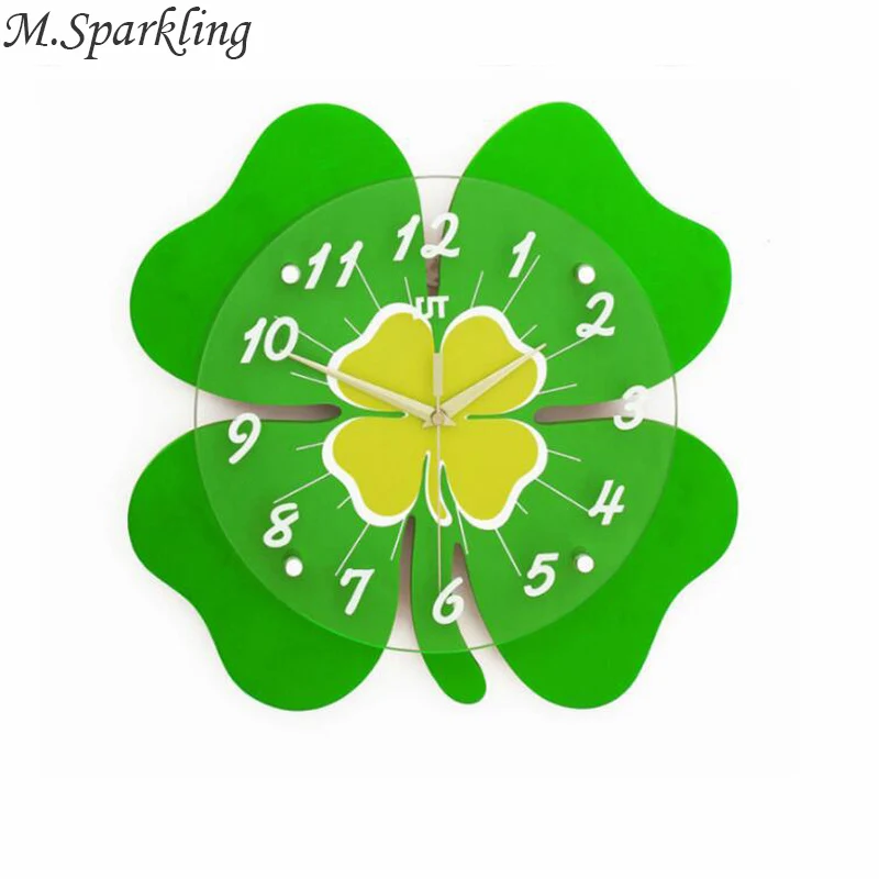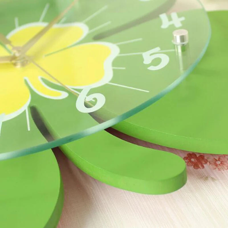 . Melhor M. espumante Relógio de Parede Sorte Trevo de Quatro folhas Da Flor de Parede Decorar Estilo Natureza Verde Flor De Vidro e De Madeira Relógios Chriatmas Barato Online Preço.
