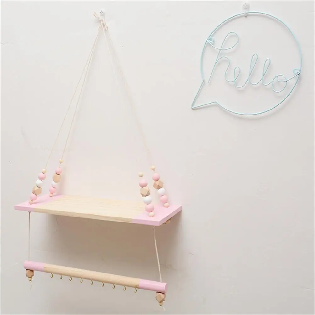 Comprar Prateleira Parede Do Quarto Nordic Original DIY Contas De Madeira Prateleira De Armazenamento Organização Prateleira Swing Kids Room Decorativa Hanging Stand Baratas Online Preço.