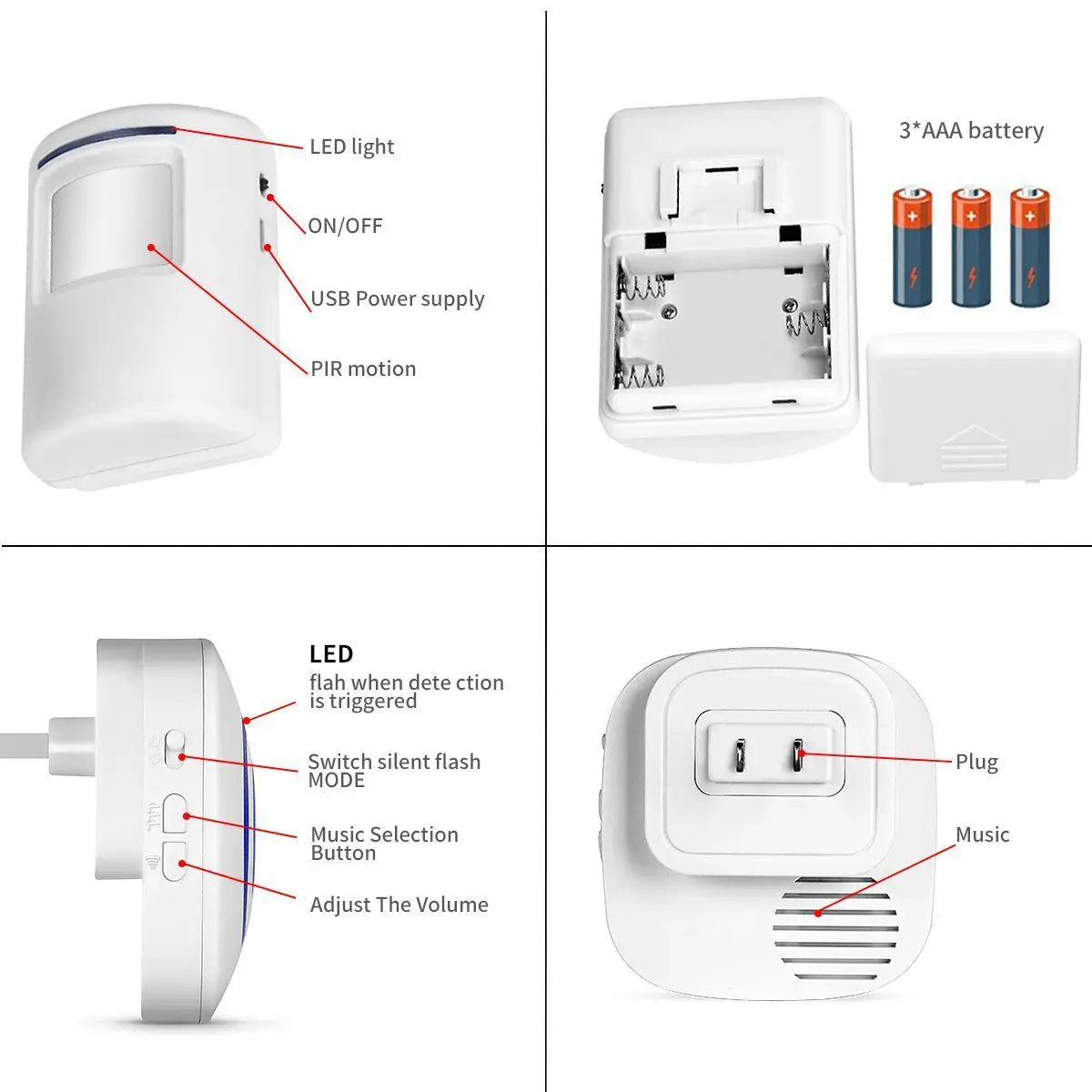 Comprar Sensor de Movimento sem fio Detector Alerta Carrilhão Visitante Campainha Da Porta de Entrada da Porta Alarme da Segurança Home Alarme Indicadores LED Plug EUA Baratas Online Preço.