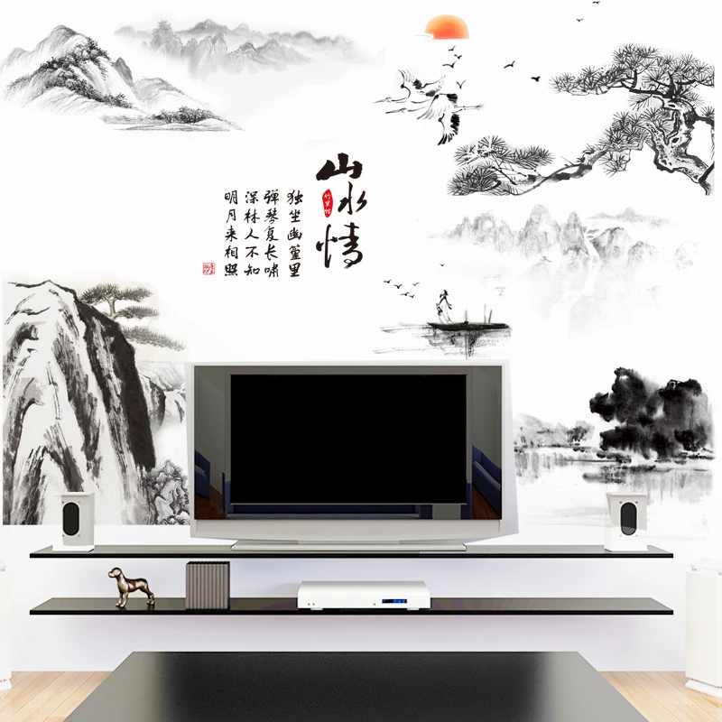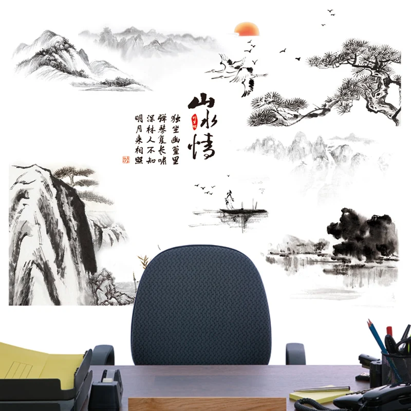 . Melhor [SHIJUEHEZI] Rios de Montanha Barco Adesivos de Parede Material de PVC DIY Estilo Chinês Da Arte Da Parede para Sala de Estudo Decoração Do Escritório Barato Online Preço.