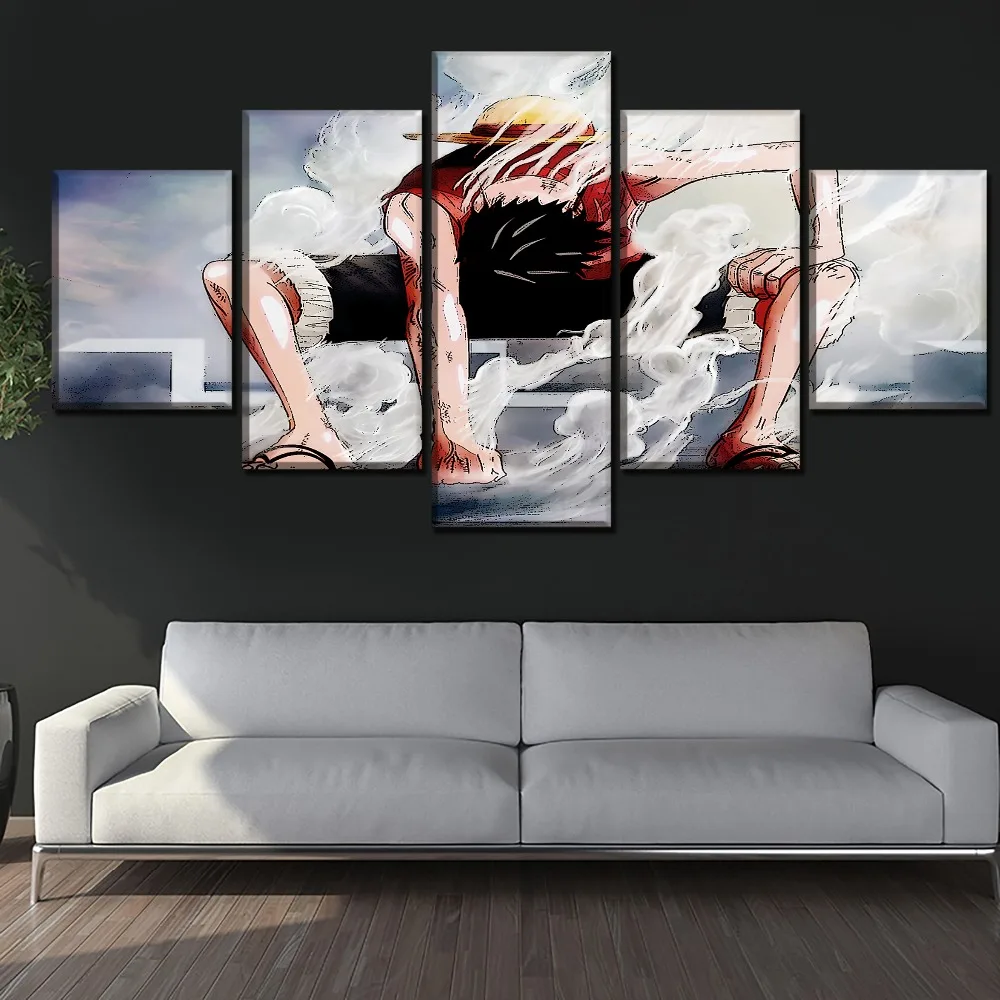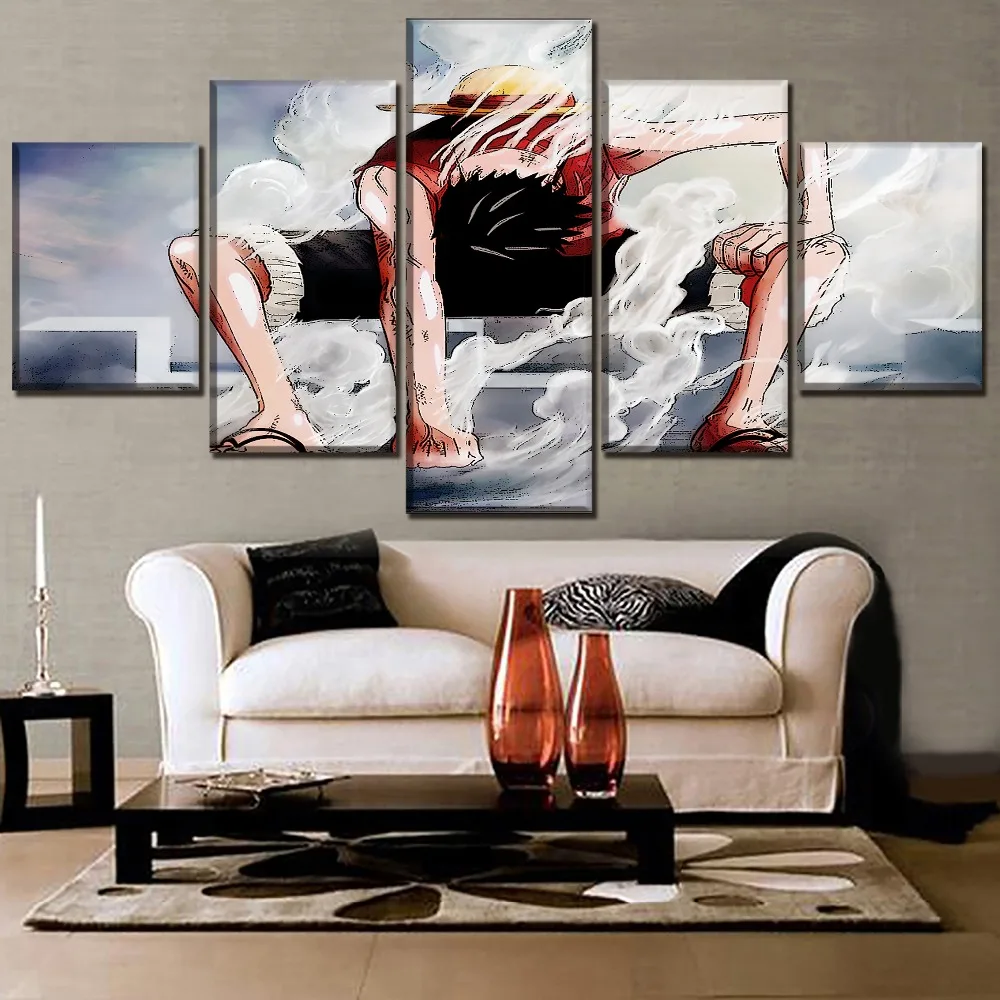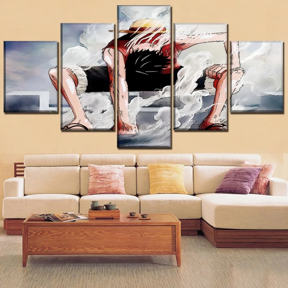Comprar Um Quadro de Conjunto Ou Unframed 5 Painel de Anime One Piece Monkey D. Luffy Cartaz Tela HD de Impressão Pintura Da Arte Moderna Da Parede Decorativ Baratas Online Preço.