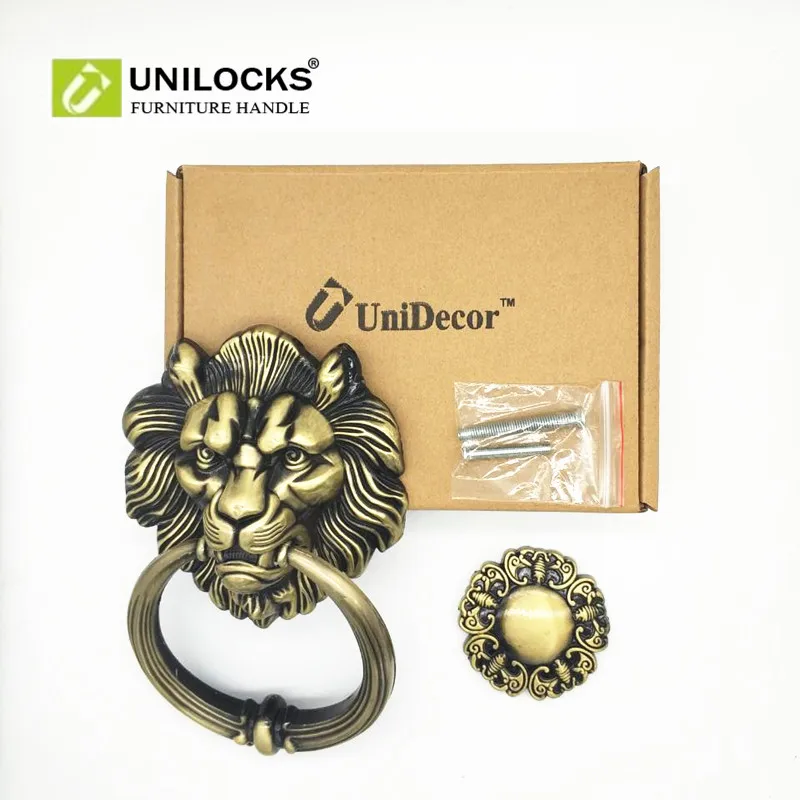 Comprar UNILOCKS 20 cm Grande Antigo Leão Aldrava Lionhead Doorknockers Lions Home Decor Baratas Online Preço.