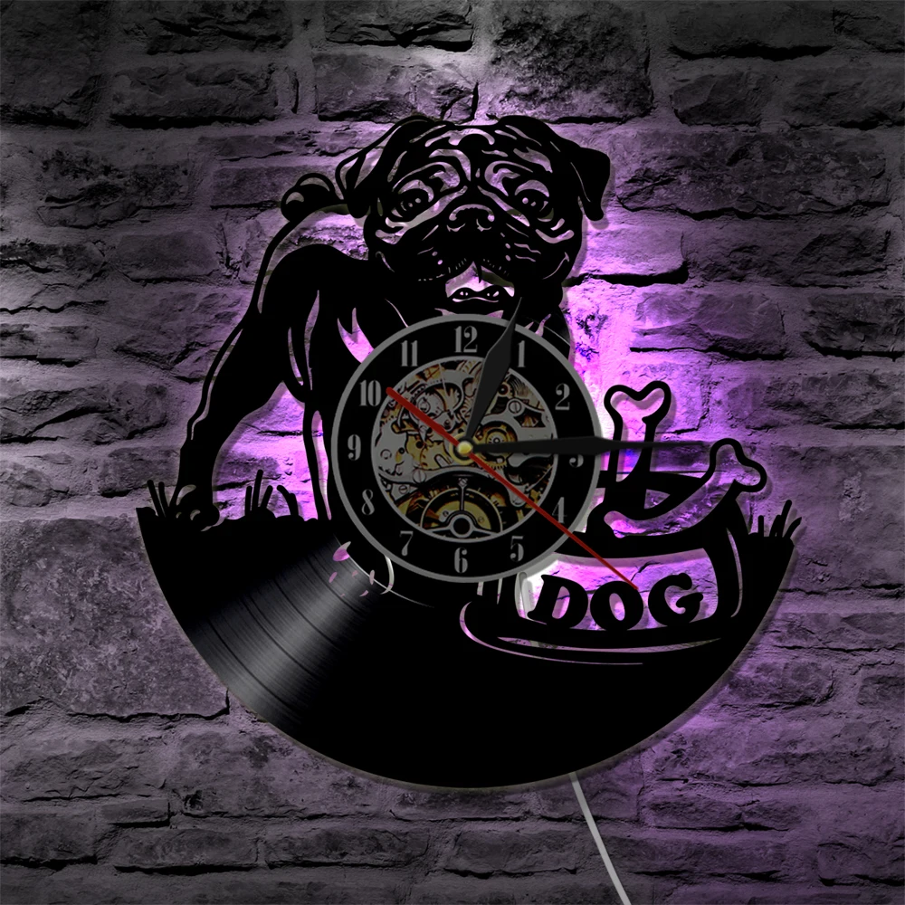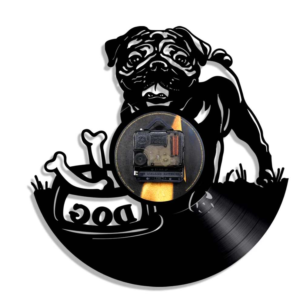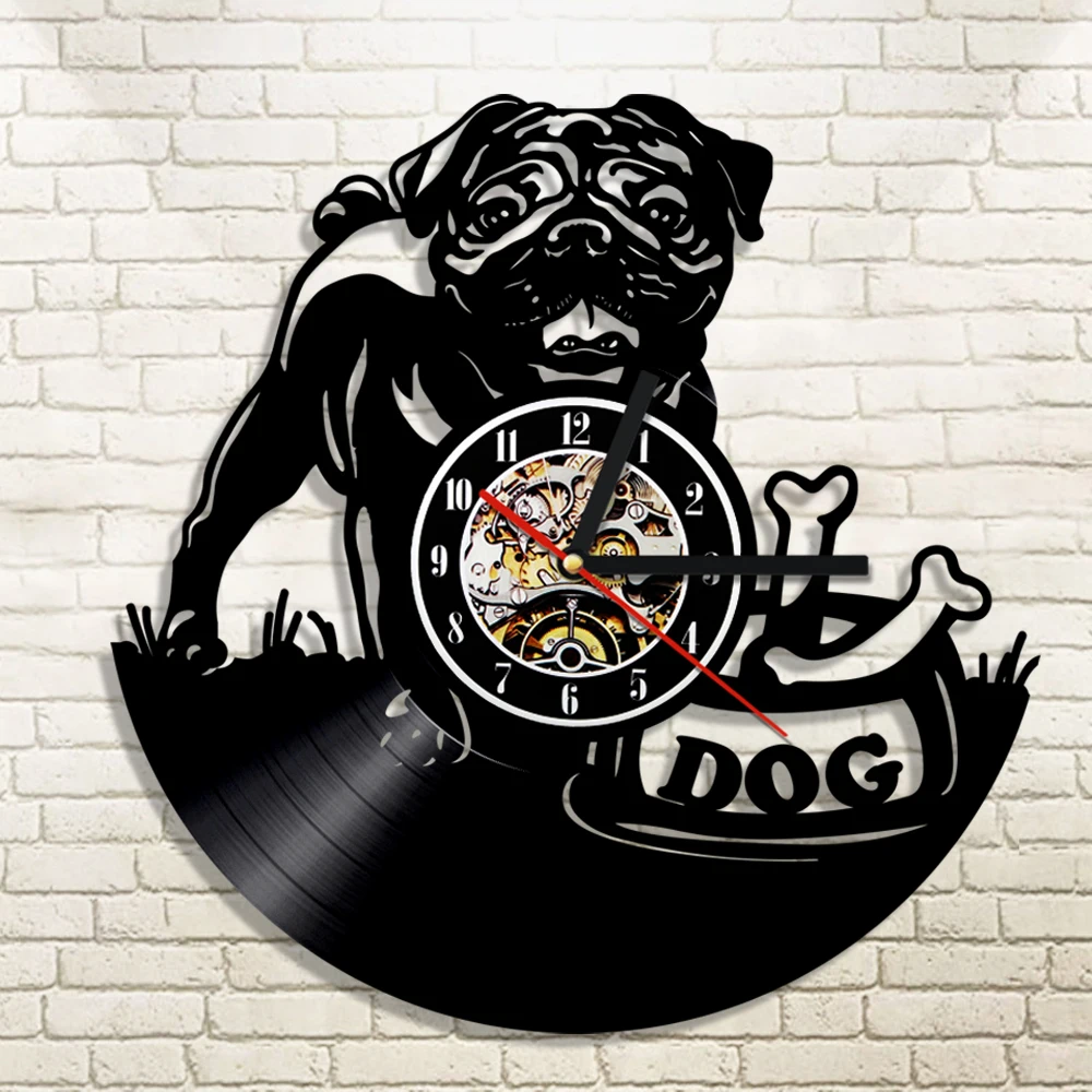 Comprar 1 Piece Bonito Pug Filhote de Cachorro do animal de Estimação da Casa de Cão Animais Crianças Da Parede Da Sala Decor Vinyl Record Relógio Artesanal Presente Do Amante Do Cão Baratas Online Preço.