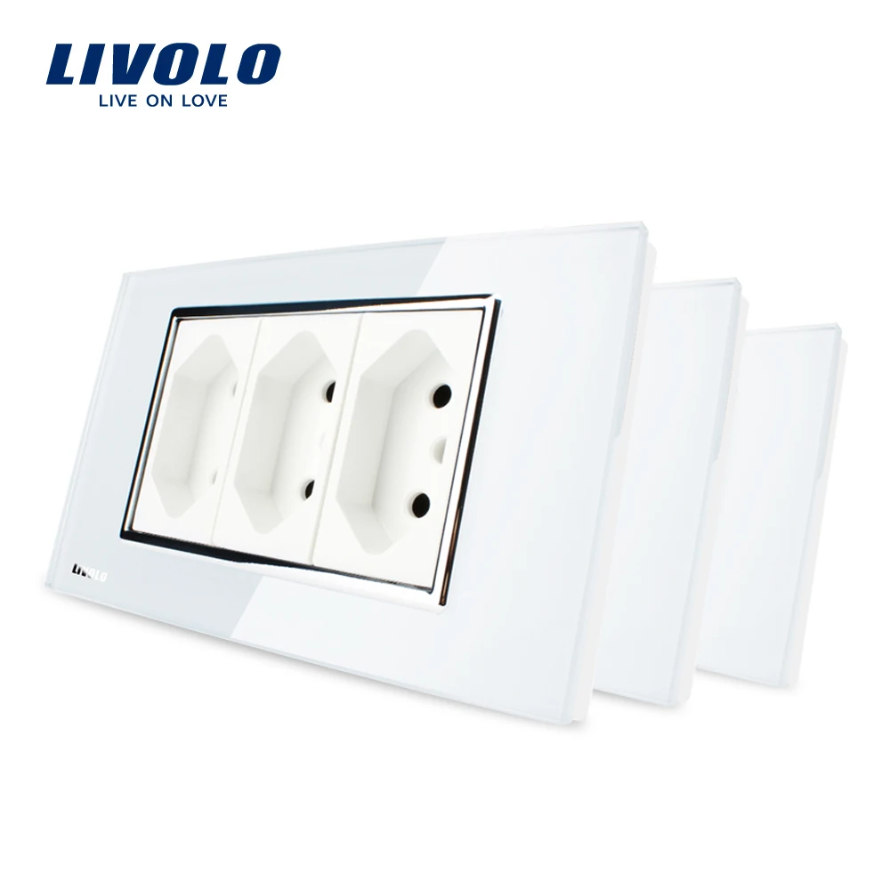 Comprar 3 pçs lote, Livolo 3 Pinos Brasileira Soquete Padrão Italiano, 10A, 250 v, com Painel de Vidro Temperado Branco, C3C3BIT 81 BR Baratas Online Preço