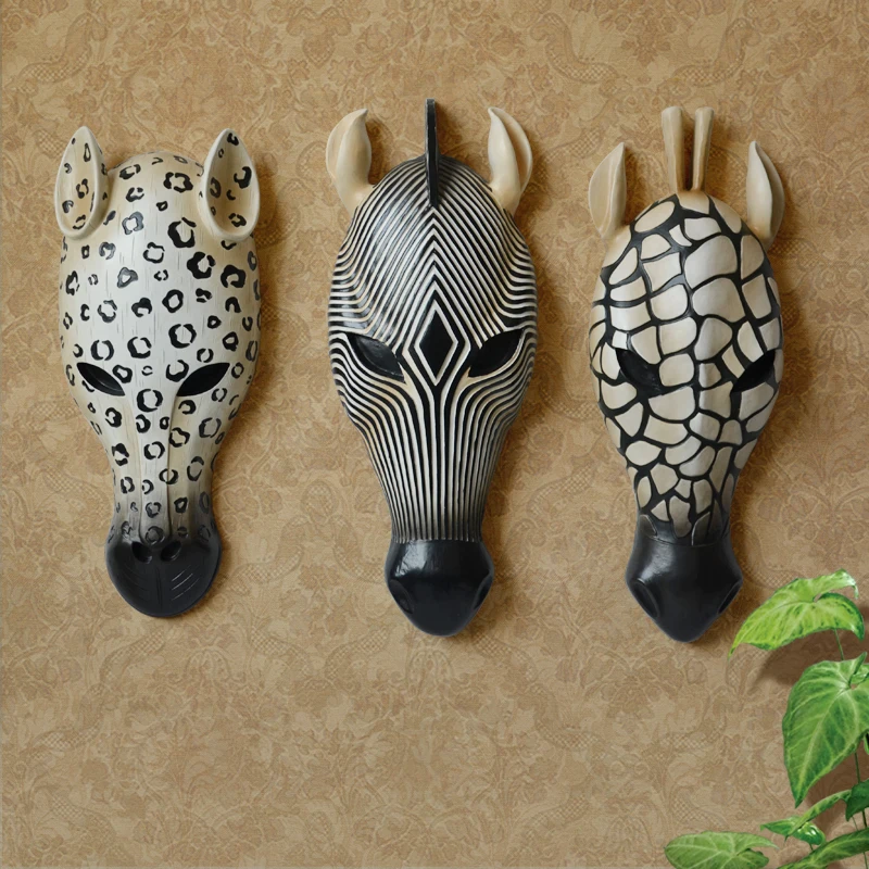Comprar 3D Simulação Máscaras de Animais Resina Artesanato sala de estar entrada Mural Abstrato Moderno Da Parede da Arte Casa decoração Animal cabeça máscaras Baratas Online Preço.