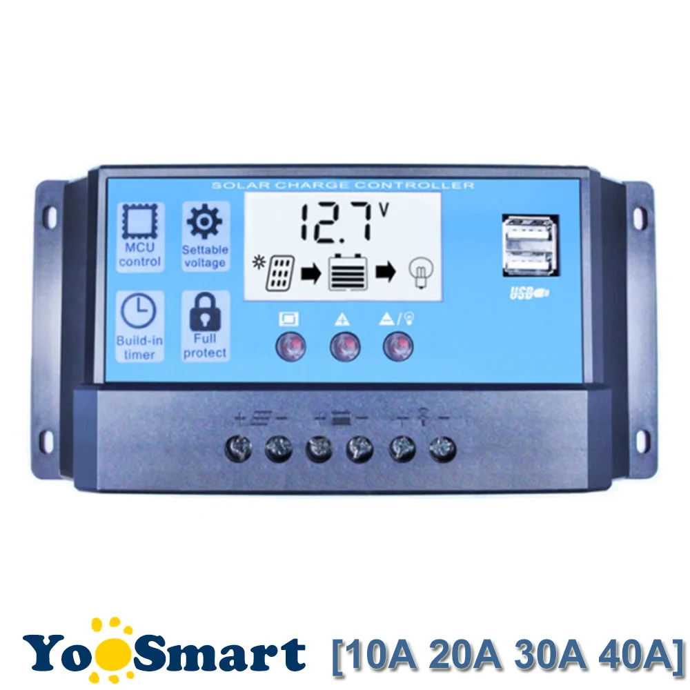 Comprar Atualizado 40A 30A 20A 10A Regulador Solar Controlador de Carga Solar PWM 12 v 24 v Auto Display Maior com Dual USB Saída 5 v Y SOLAR Baratas Online Preço.