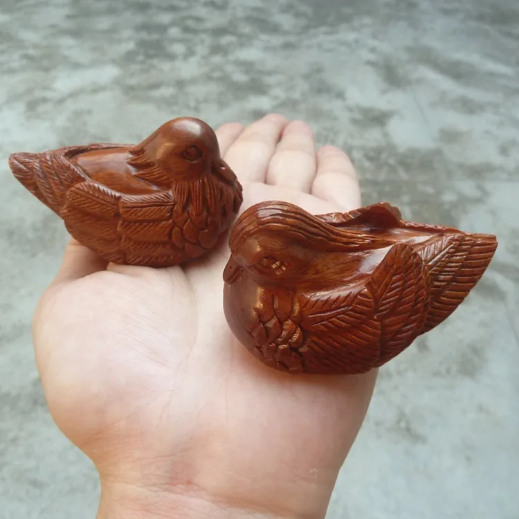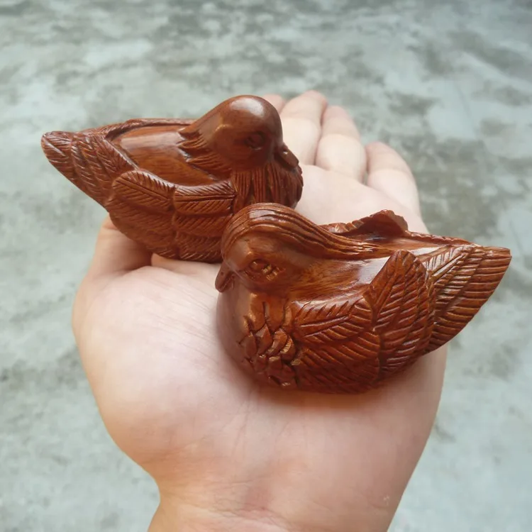 Comprar Bonito Casal Pato Mandarim Casa Quarto Ornamentos Estátua Escultura Em Madeira Baratas Online Preço.