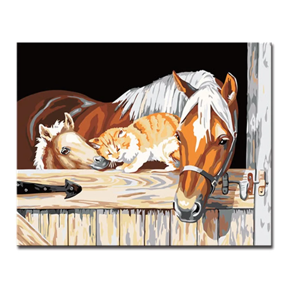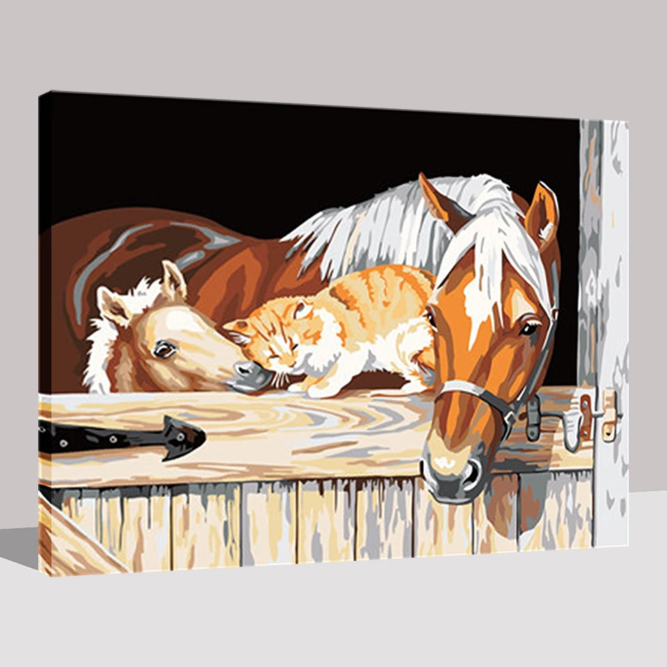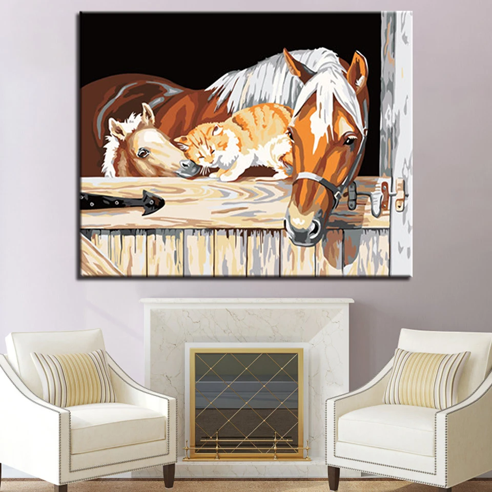 . Melhor Casa Modular Decorativo Retrato Da Arte Da Parede Cavalo de Presente E Bonito Gato Pintura DIY Por Números Kits Pintar Colorir Quadro Moderno Barato Online Preço.