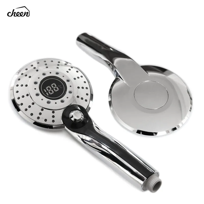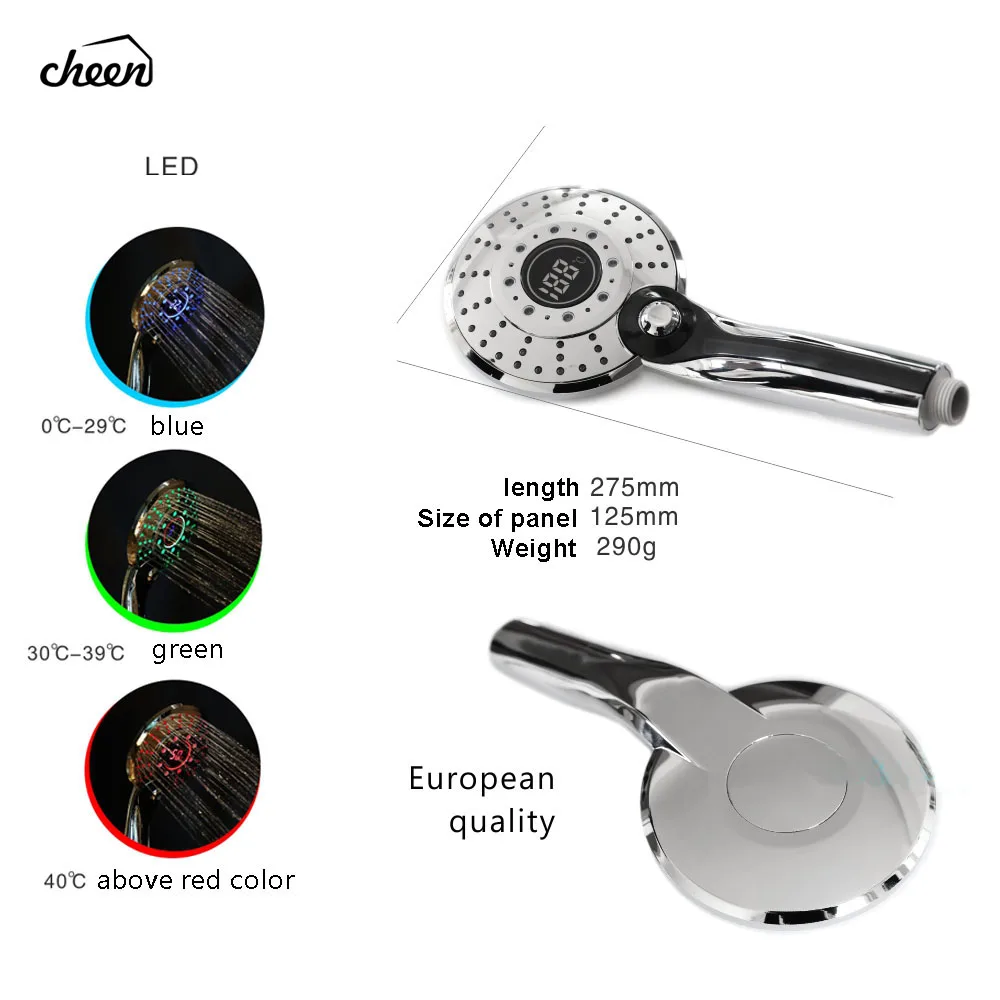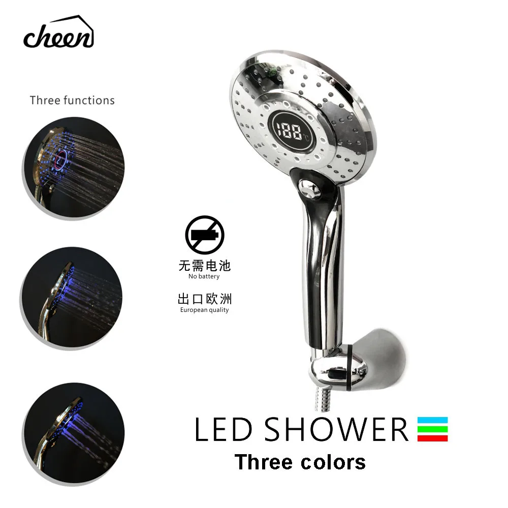 . Melhor Cheen 3 Cores Água Produzido Led Cabeça de Chuveiro Temperatura Display Digital Handheld Chuveiro Do Banheiro Cabeça Chuveiro de Água Pulverizador Barato Online Preço.