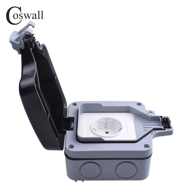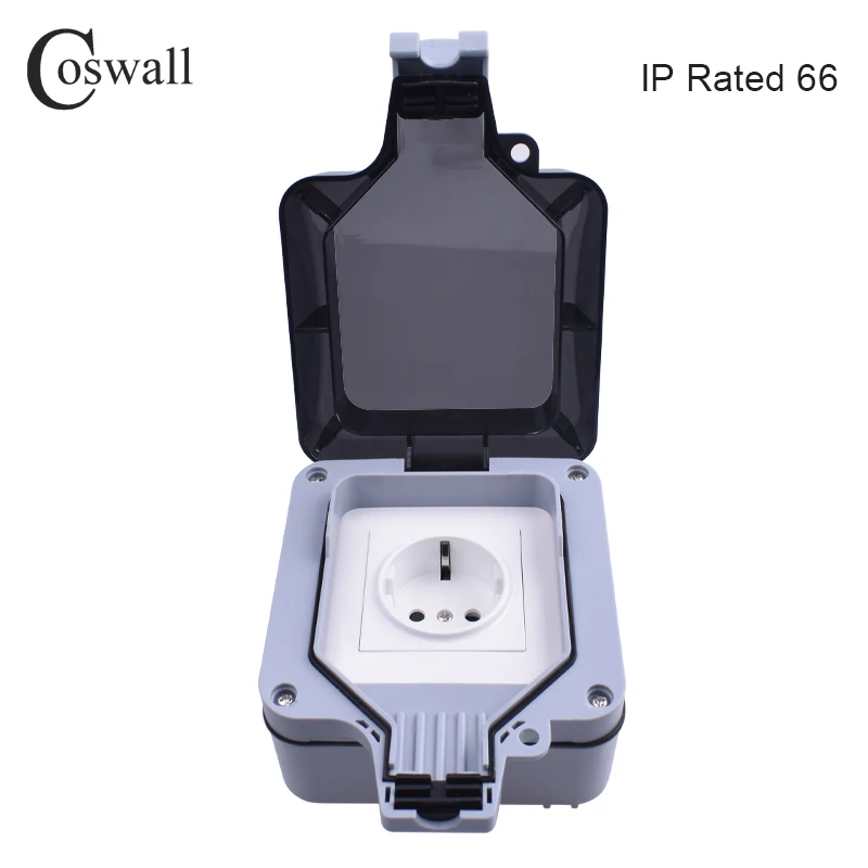 Comprar Coswall IP66 16A Padrão DA UE Parede Tomada À Prova D Água Ao Ar Livre À Prova de Intempéries Tomada Elétrica Aterrada AC 110 ~ 250 v Baratas Online Preço.