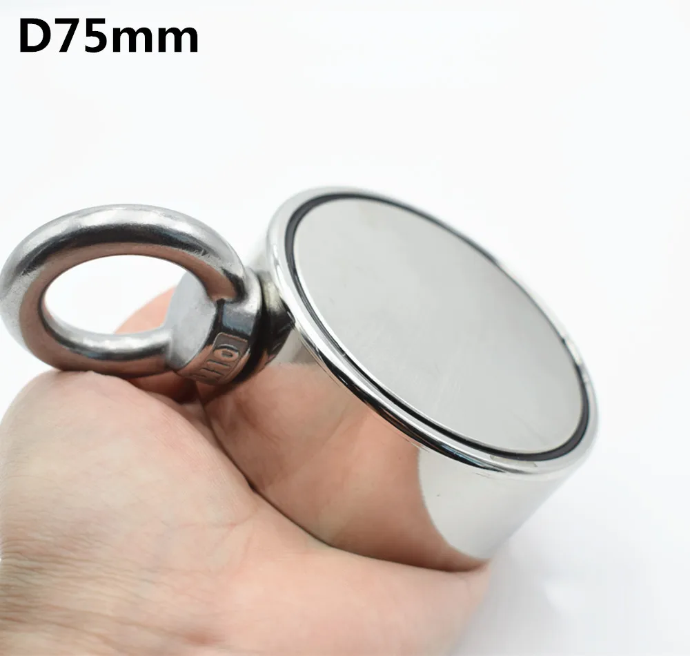 Comprar D75mm Neodímio ímã poderoso super buraco Double sided salvamento pesca ímã 300 kg gancho Anel Circular permanente de Aço titular Baratas Online Preço.