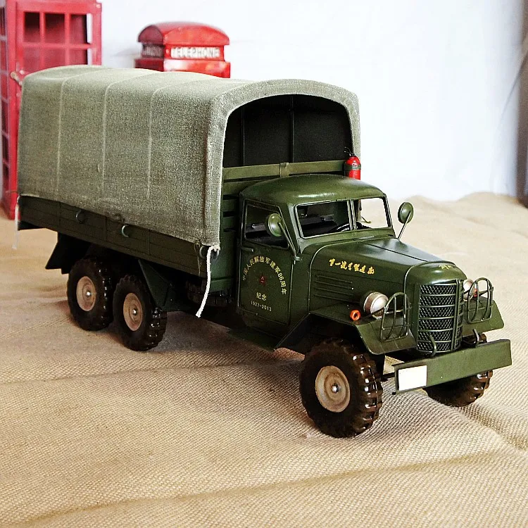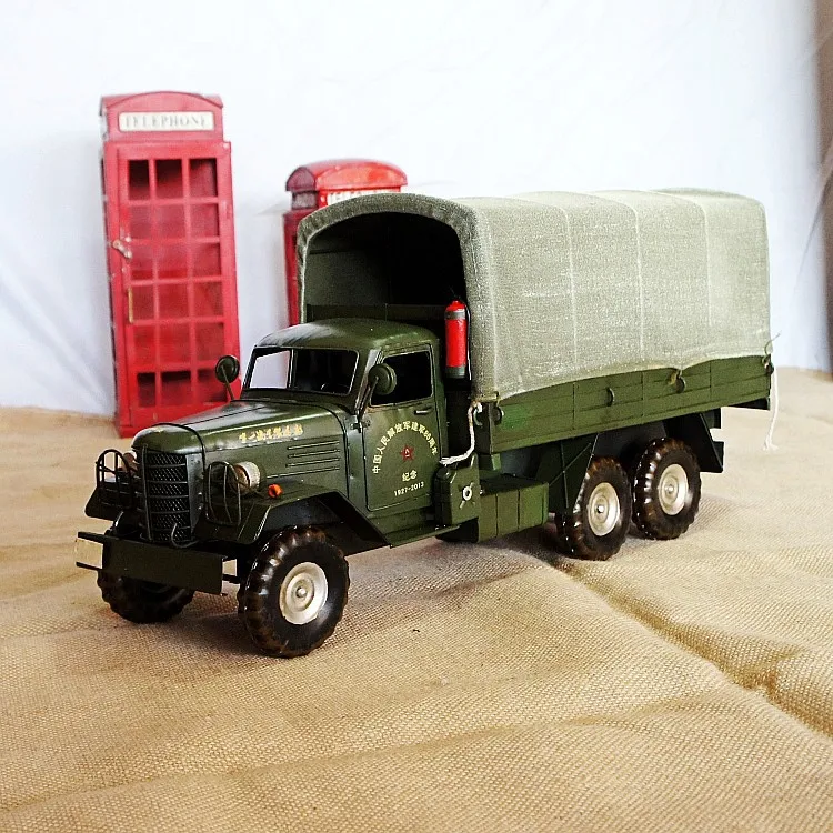 Comprar Enfeite de ferro antigo modelo de caminhão de transporte do exército de libertação do Povo home decor artesanato estatuetas de metal adereços fotografia Baratas Online Preço
