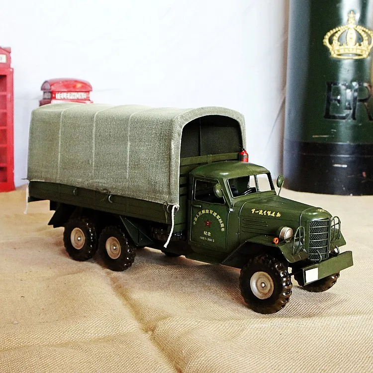 Comprar Enfeite de ferro antigo modelo de caminhão de transporte do exército de libertação do Povo home decor artesanato estatuetas de metal adereços fotografia Baratas Online Preço.