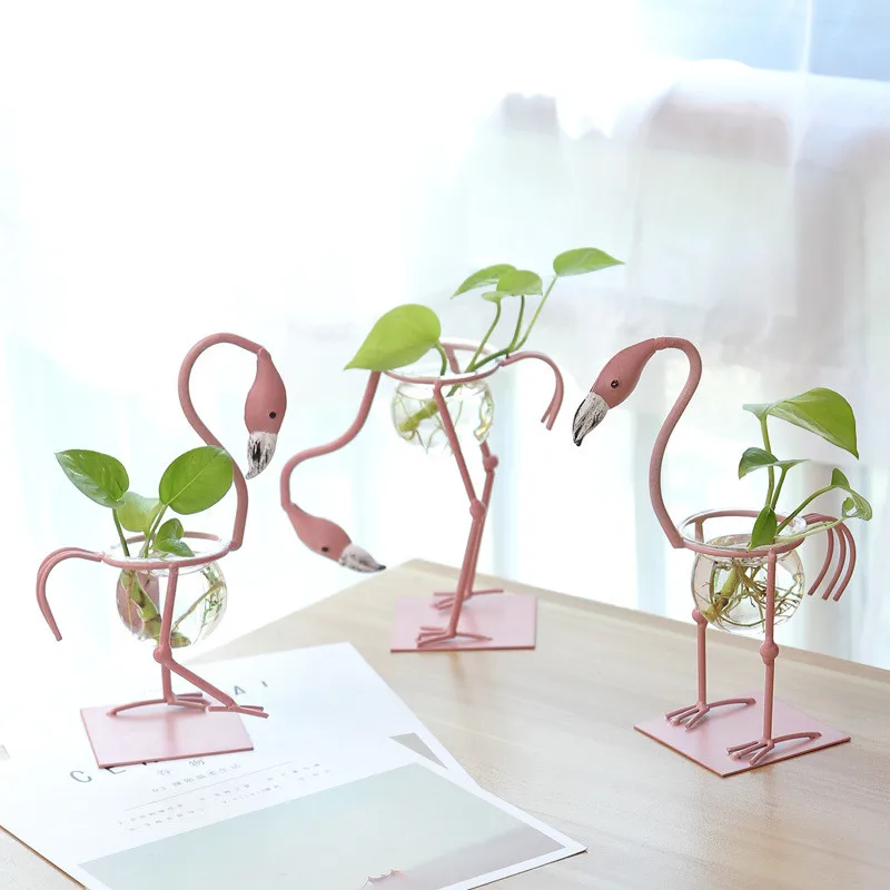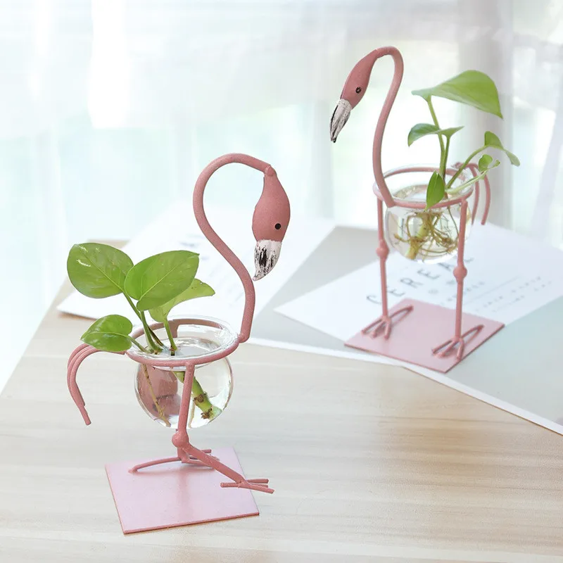 Comprar Flamingo ZAKAKA Estilo Micro paisagem Vaso De Vidro Decoração de Casa Criativa Garrafa Hidropônico Decoração Do Escritório Flamingo Castiçal Baratas Online Preço.