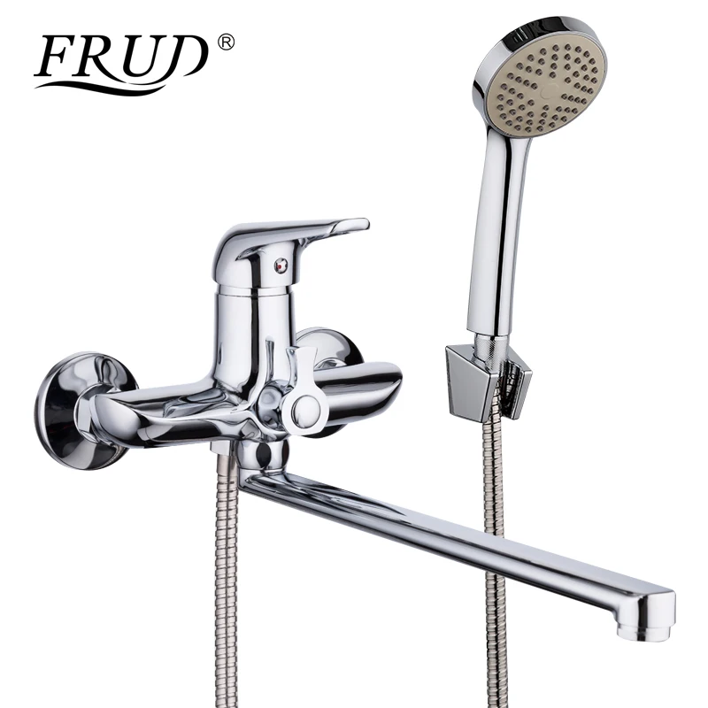 Comprar FRUD 1 35 cm Saída do Tubo de Liga de Zinco conjunto Banheira Chuveiro Torneira Superfície Cromada com Cabeça de Chuveiro Do Banheiro Frio e torneira de Água quente R22102 Baratas Online Preço.