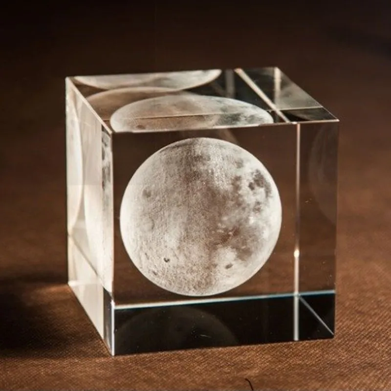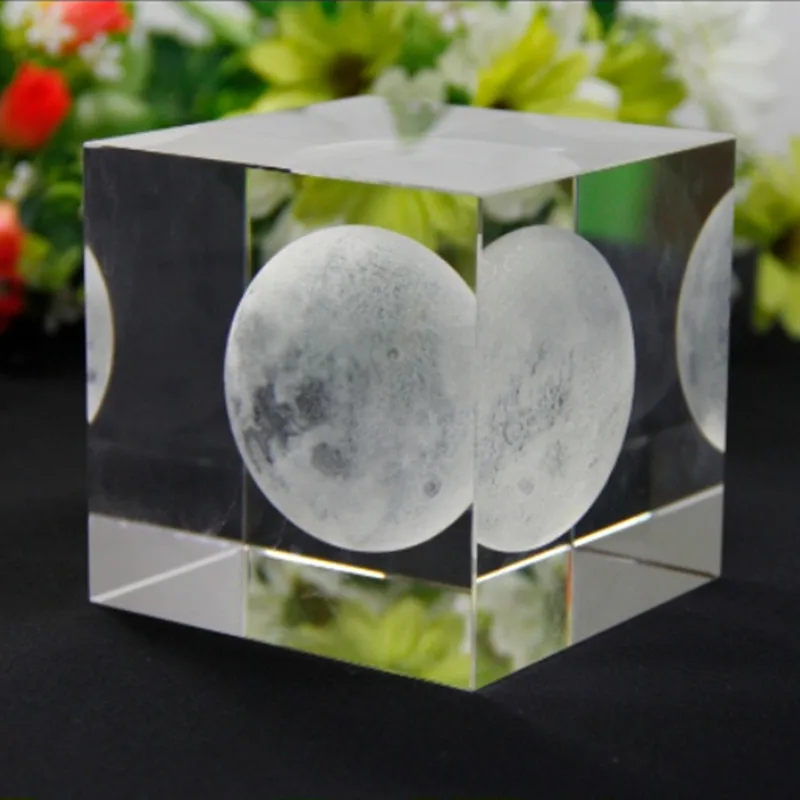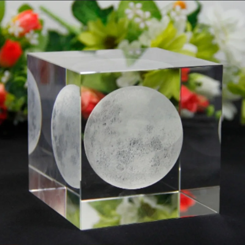 Comprar JQJ Lua de Cristal Cubo De Vidro Paperweights Claras Raros feng shui Figurinhas Gravação A Laser 3D miniaturas Para Decoração de Casamento Em Casa Baratas Online Preço.