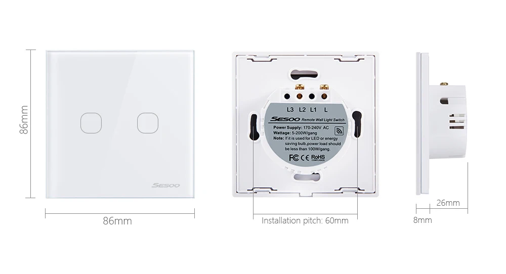 . Melhor Maneira SY2 02 1 SESOO 2 Gangue Interruptor de Toque Inteligente de Controle Remoto Interruptores Interruptor de Parede Impermeável Do Painel de Vidro Sensível Ao Toque Barato Online Preço.