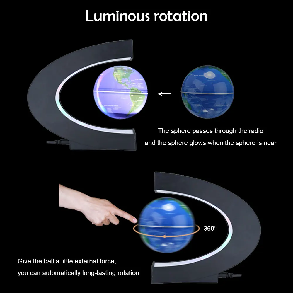 Comprar Moda Casa Decoração Tellurion Forma C Luminosa LED Flutuante Levitação Magnética Globo Anti Gravidade Mapa Do Mundo EUA REINO UNIDO Plugue DA UE Baratas Online Preço.
